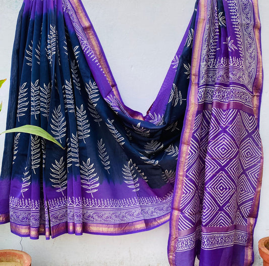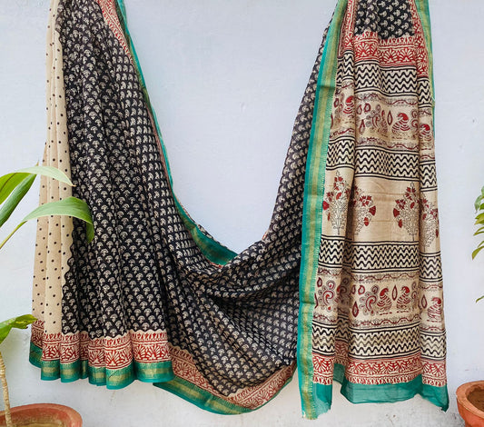 Maheshwari Hand block Silk Saree