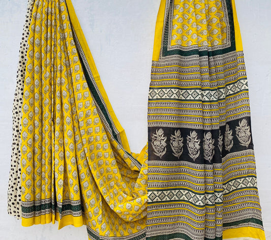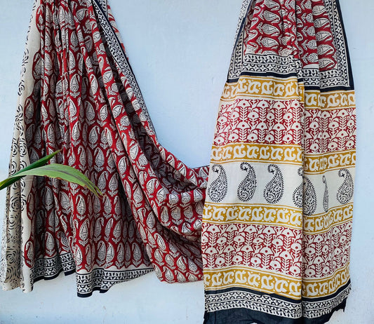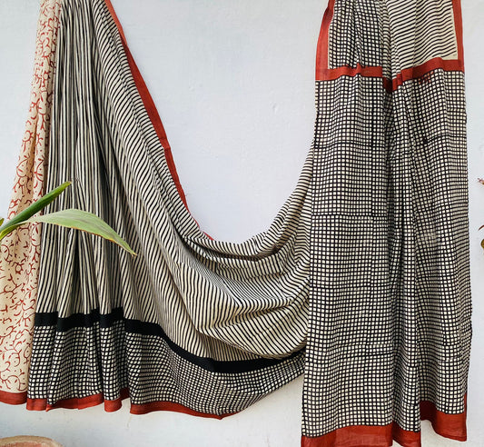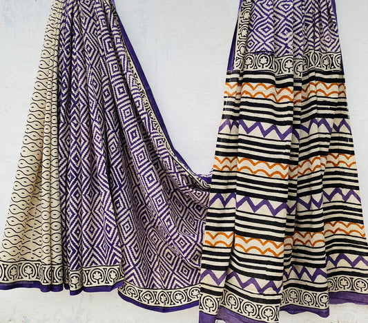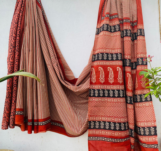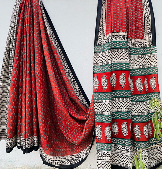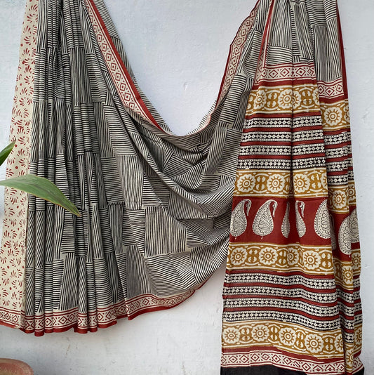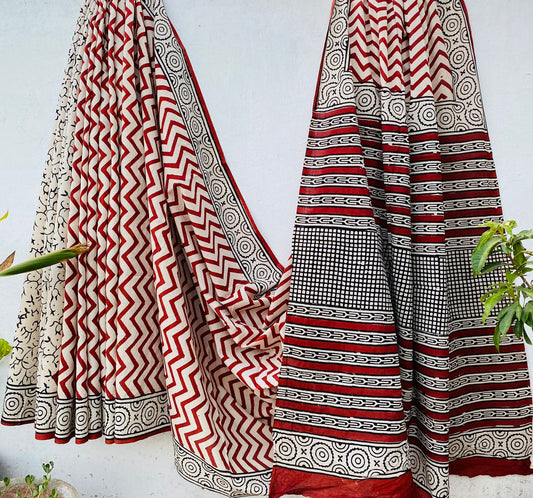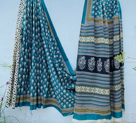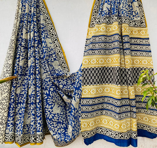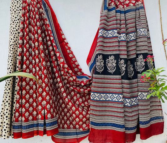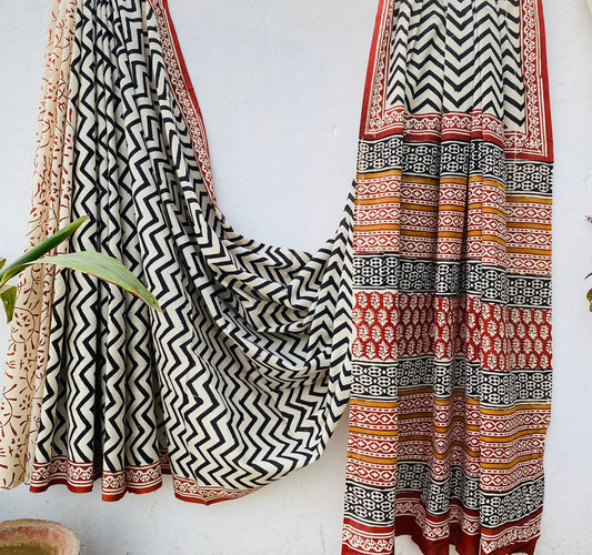 Handblock printed Mulmul soft cotton saree