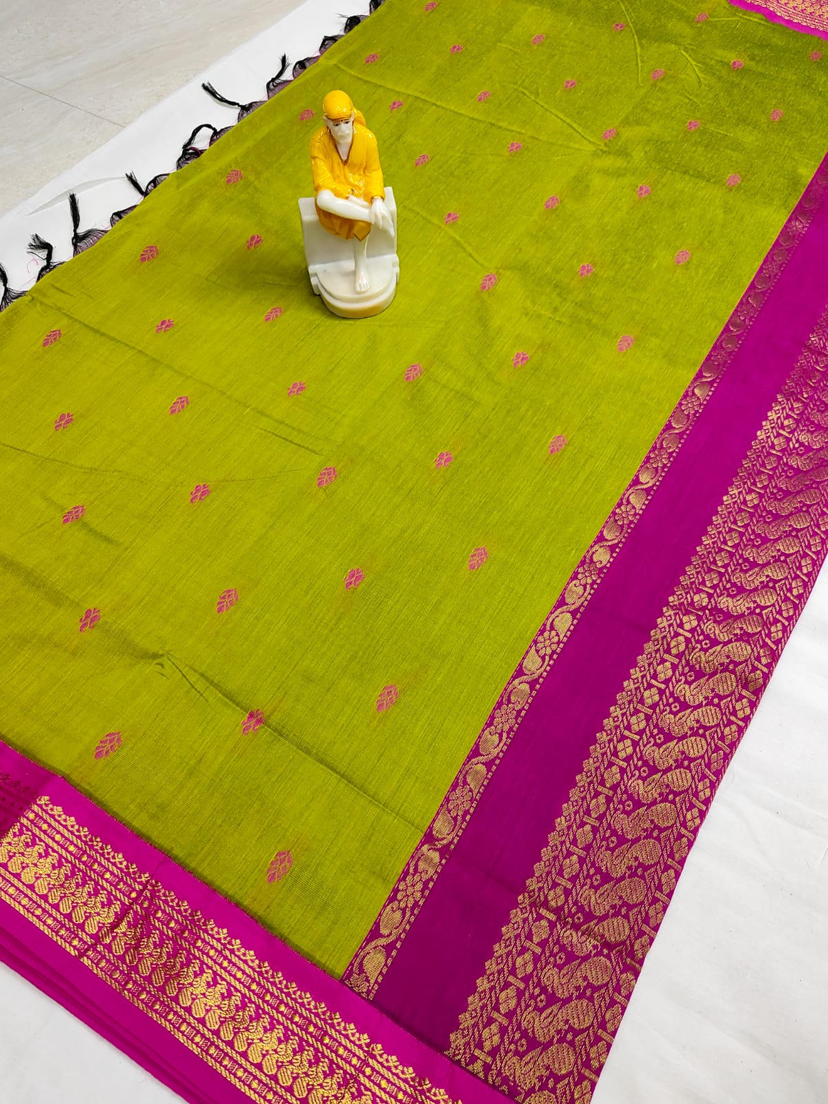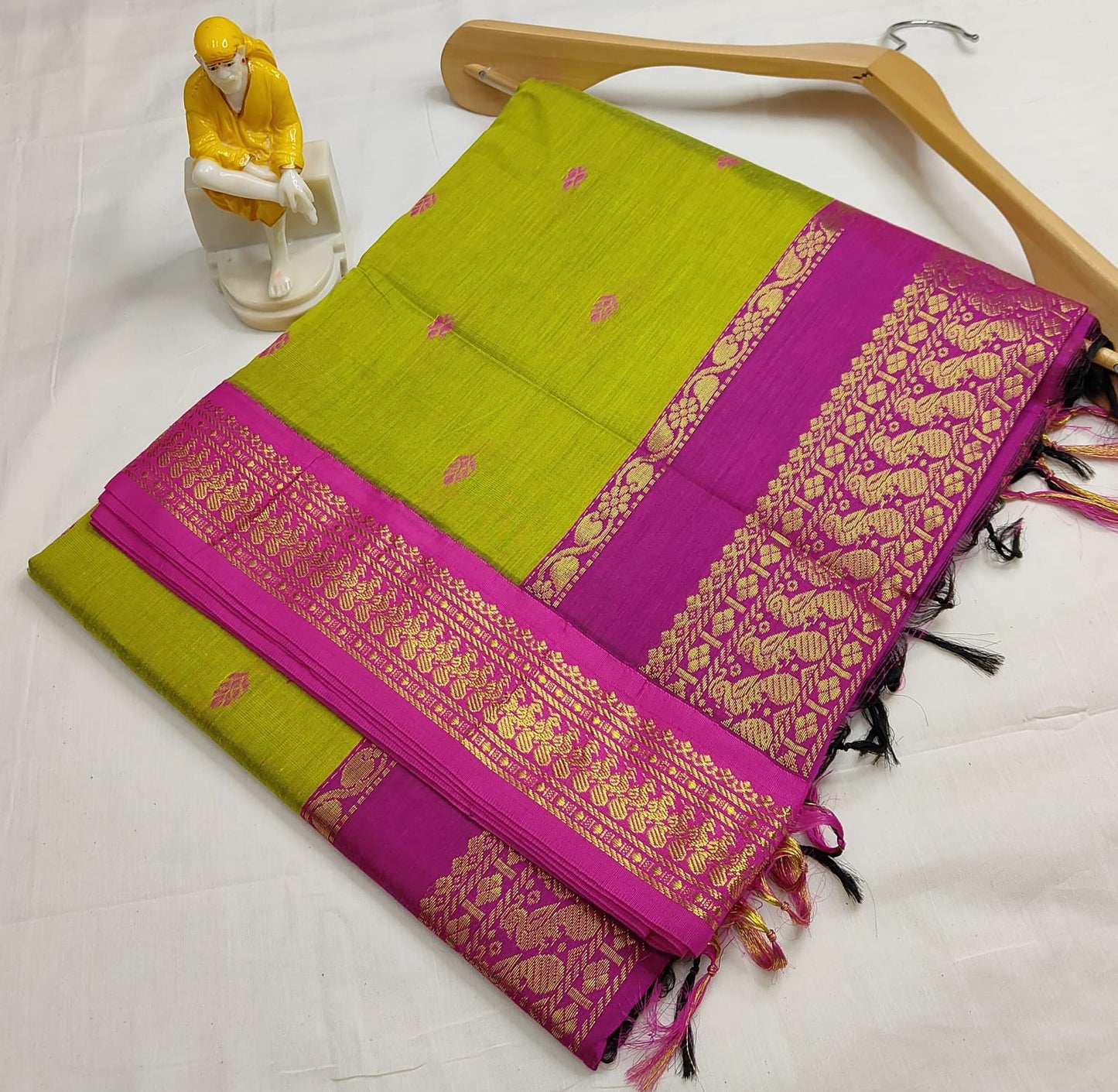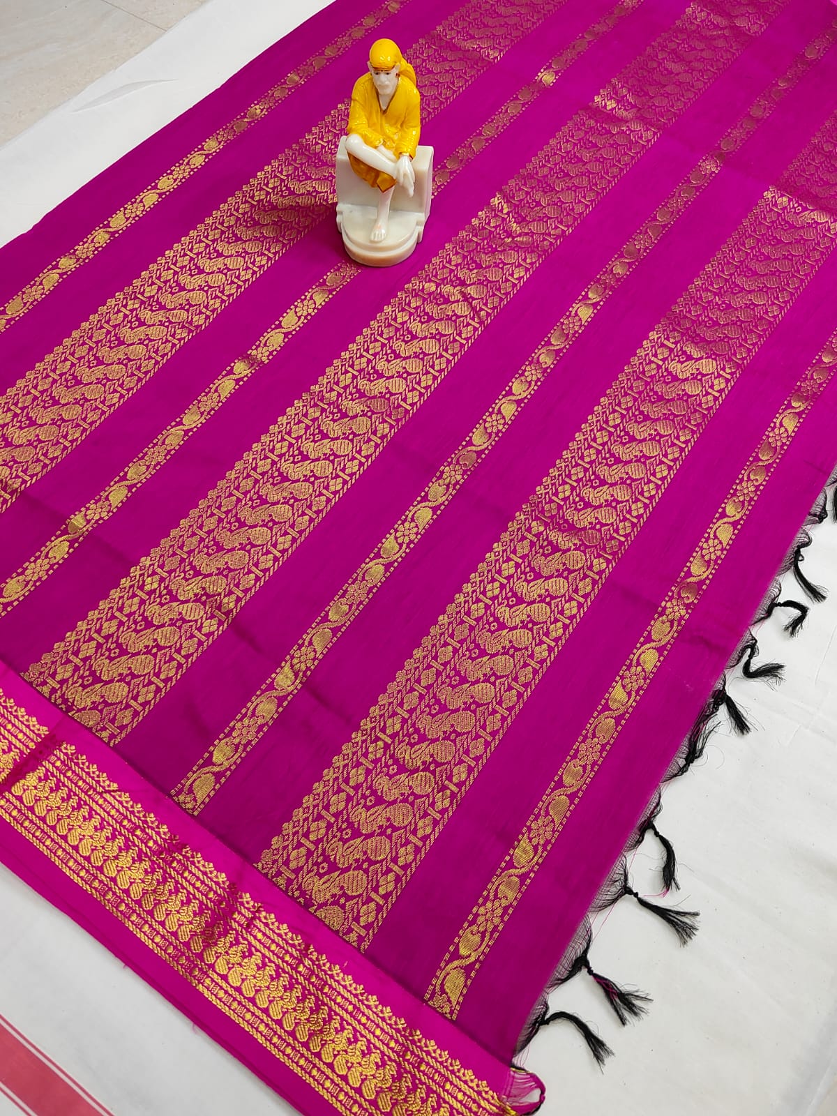 Gorgeous Madurai cotton silk saree with a copper zari border & rich traditional pallu With blouse