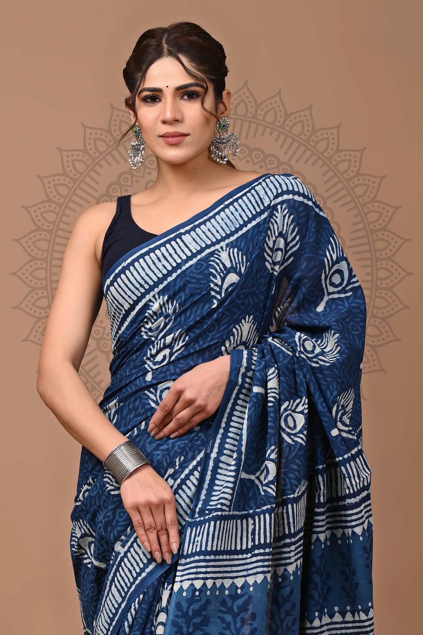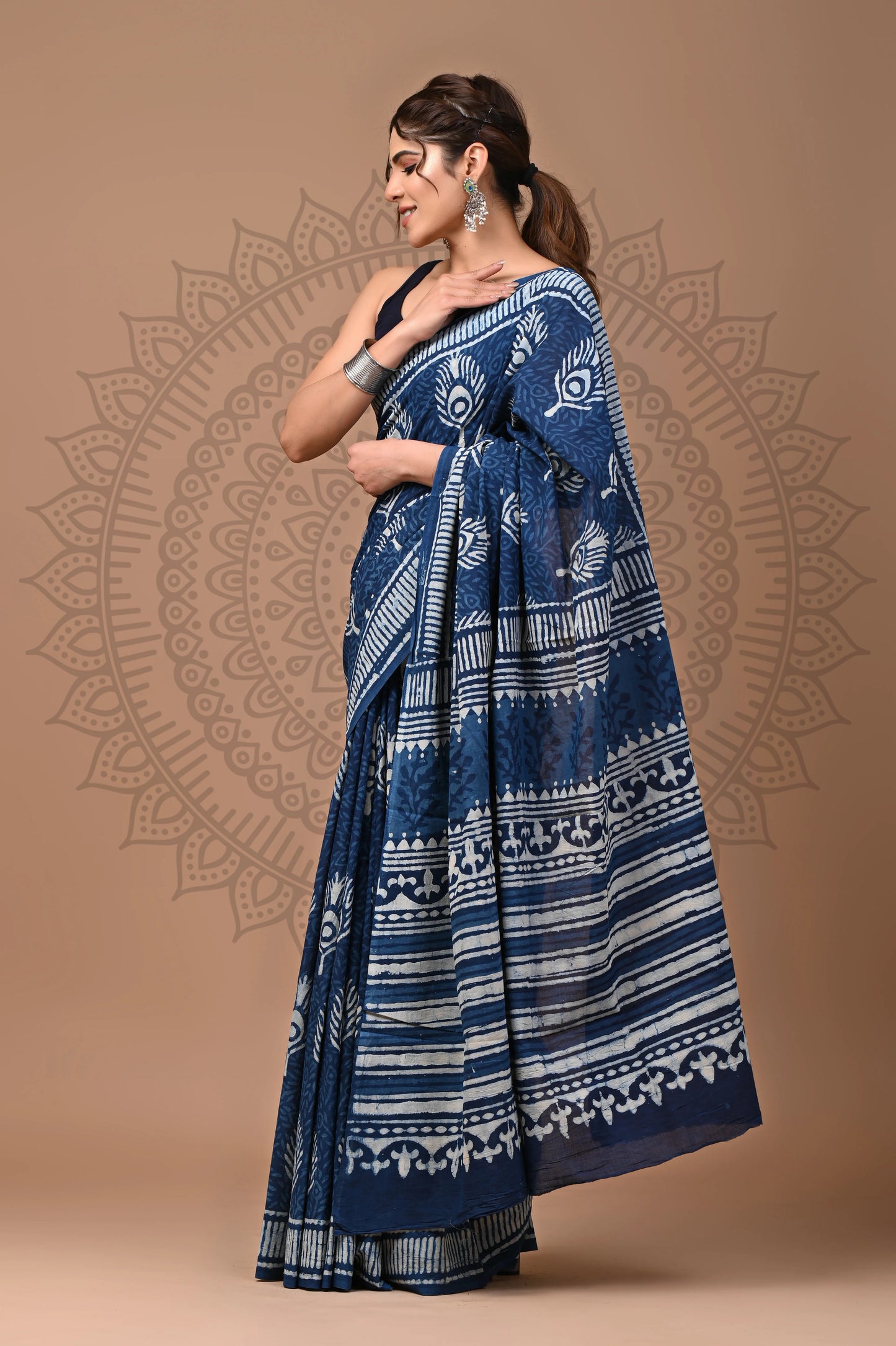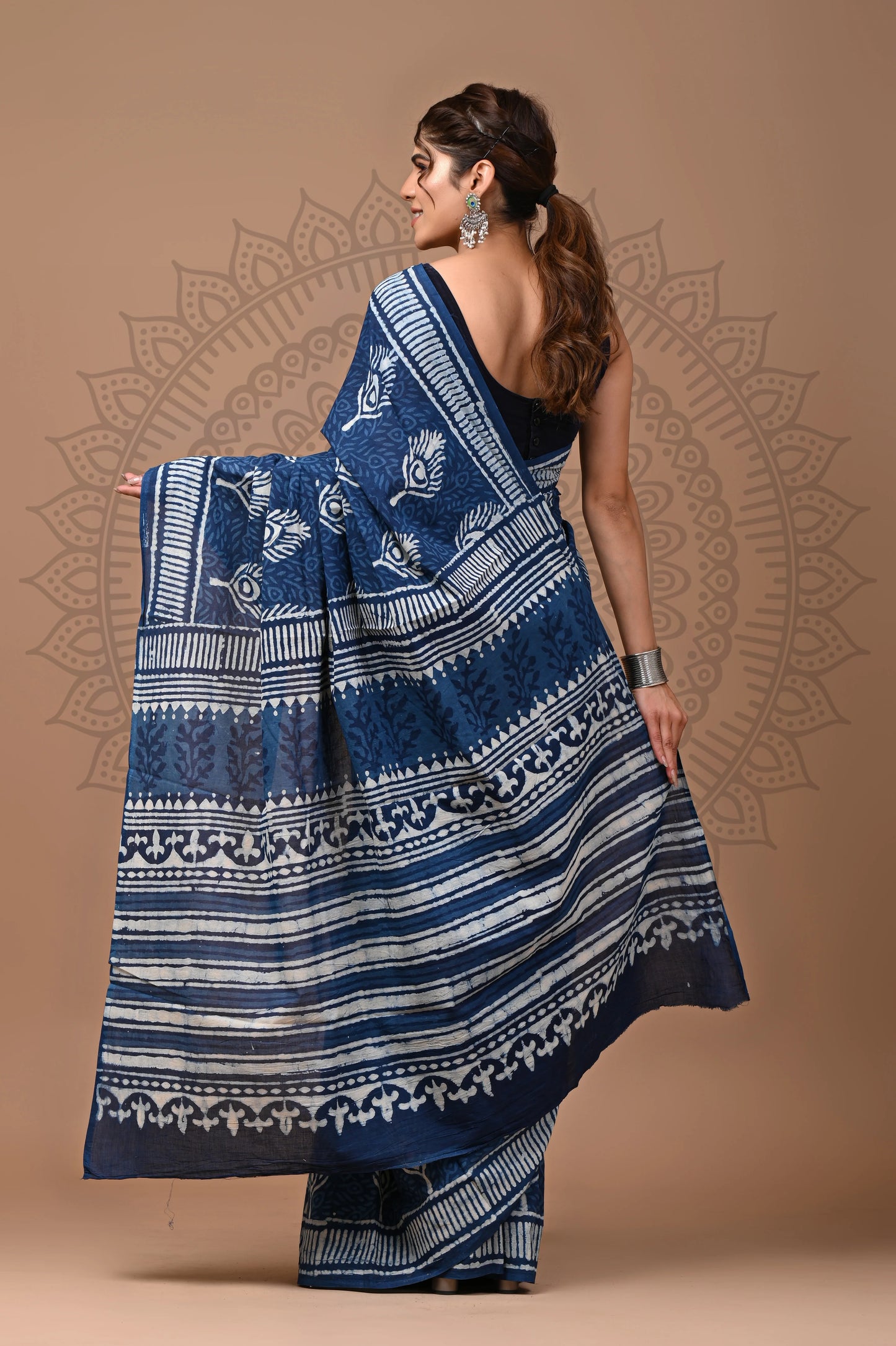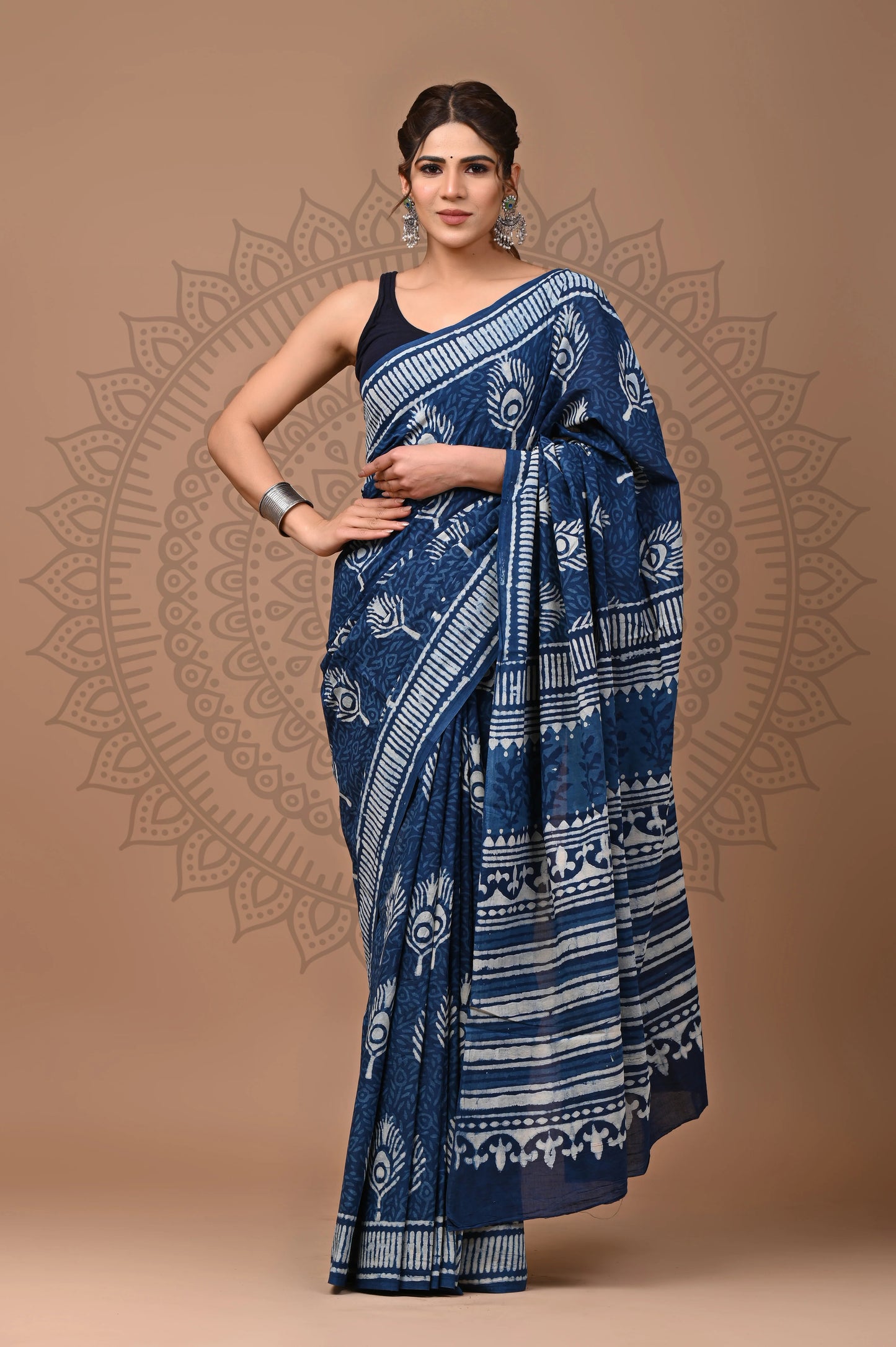 Note: These sarees are purely handmade with hand block print techniques using vegetable dye, not using any harsh chemicals or acids. Minor inconsistency in print, lightness or darkness of print in some areas are natural in hand block print. These are not defect, but adds to individuality and uniqueness to the item.
