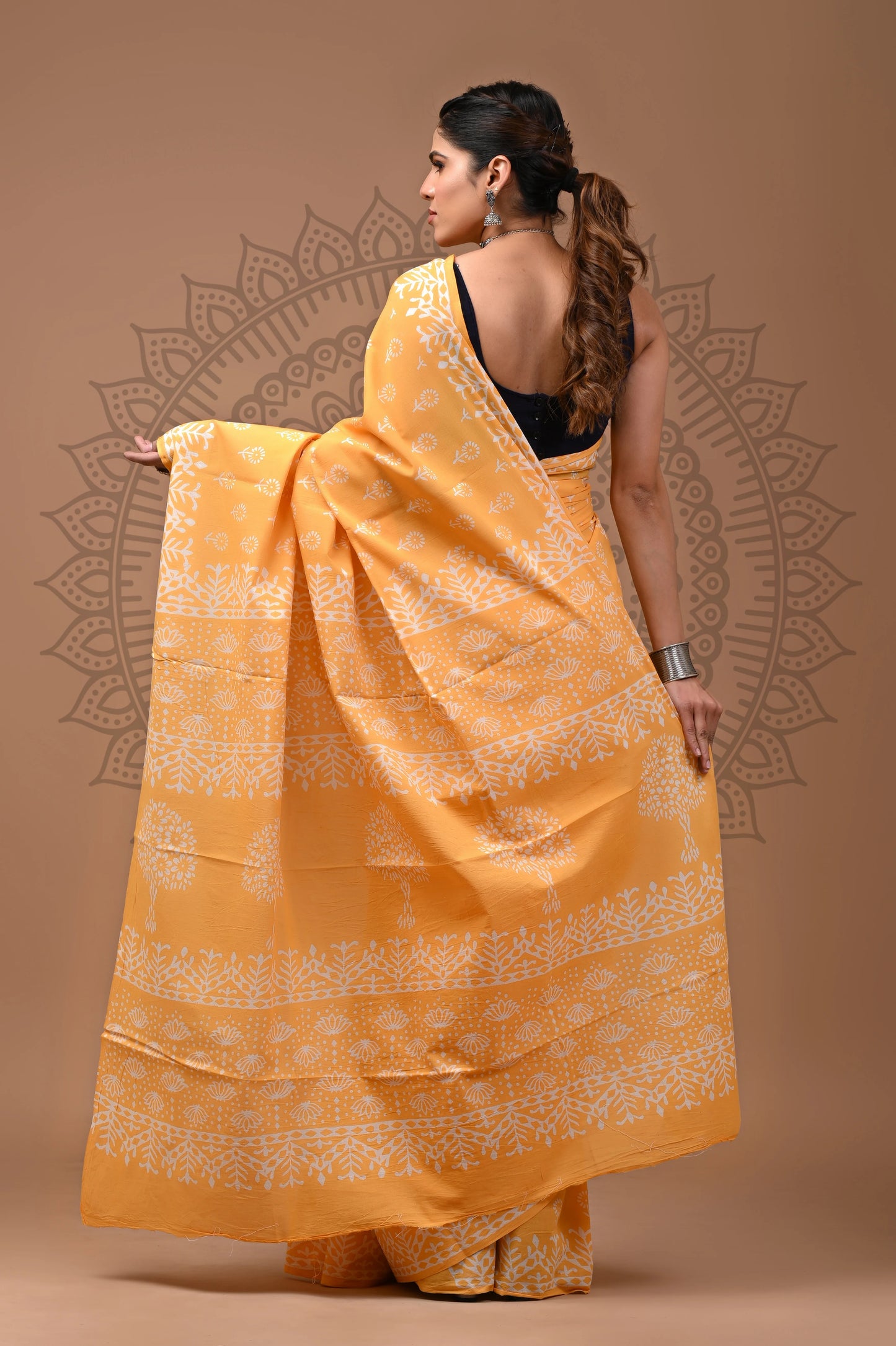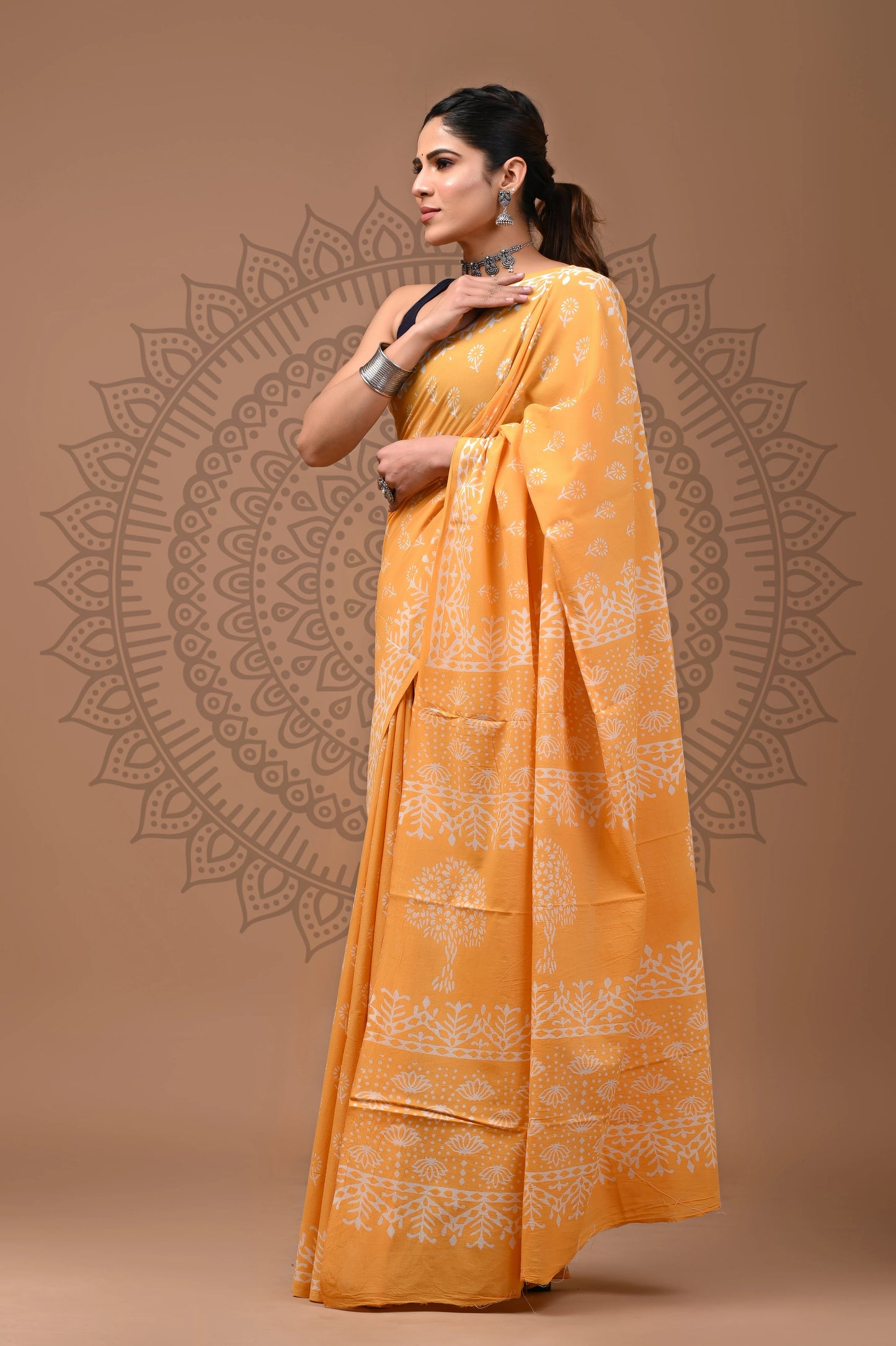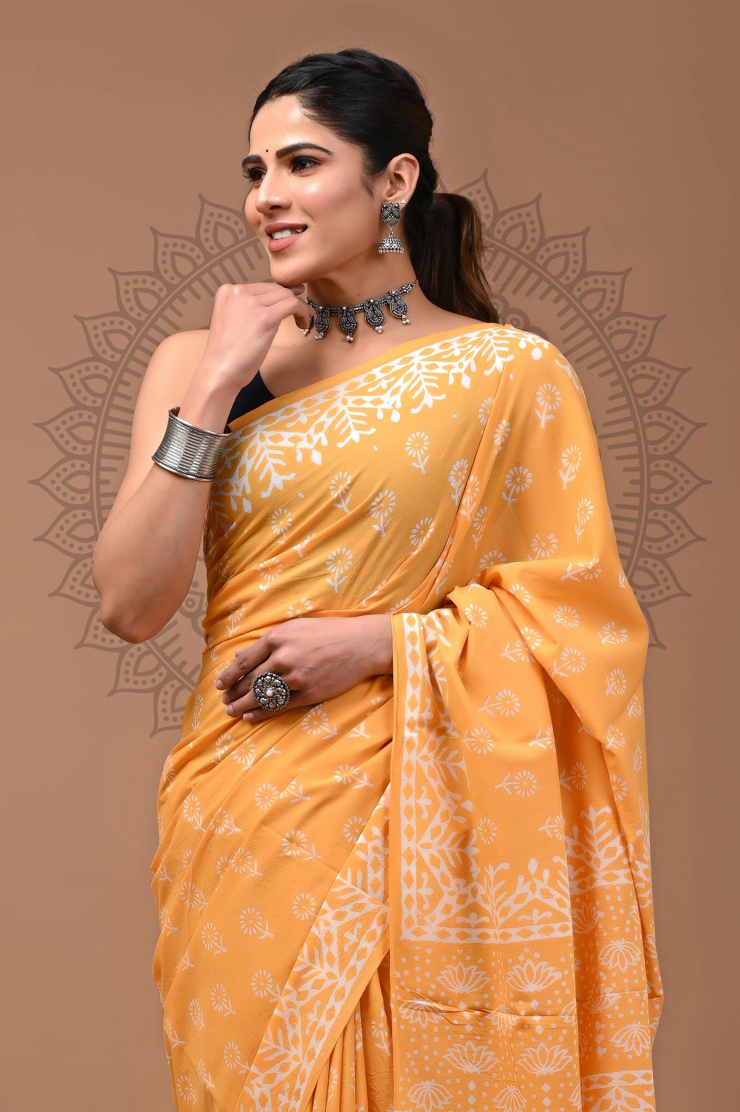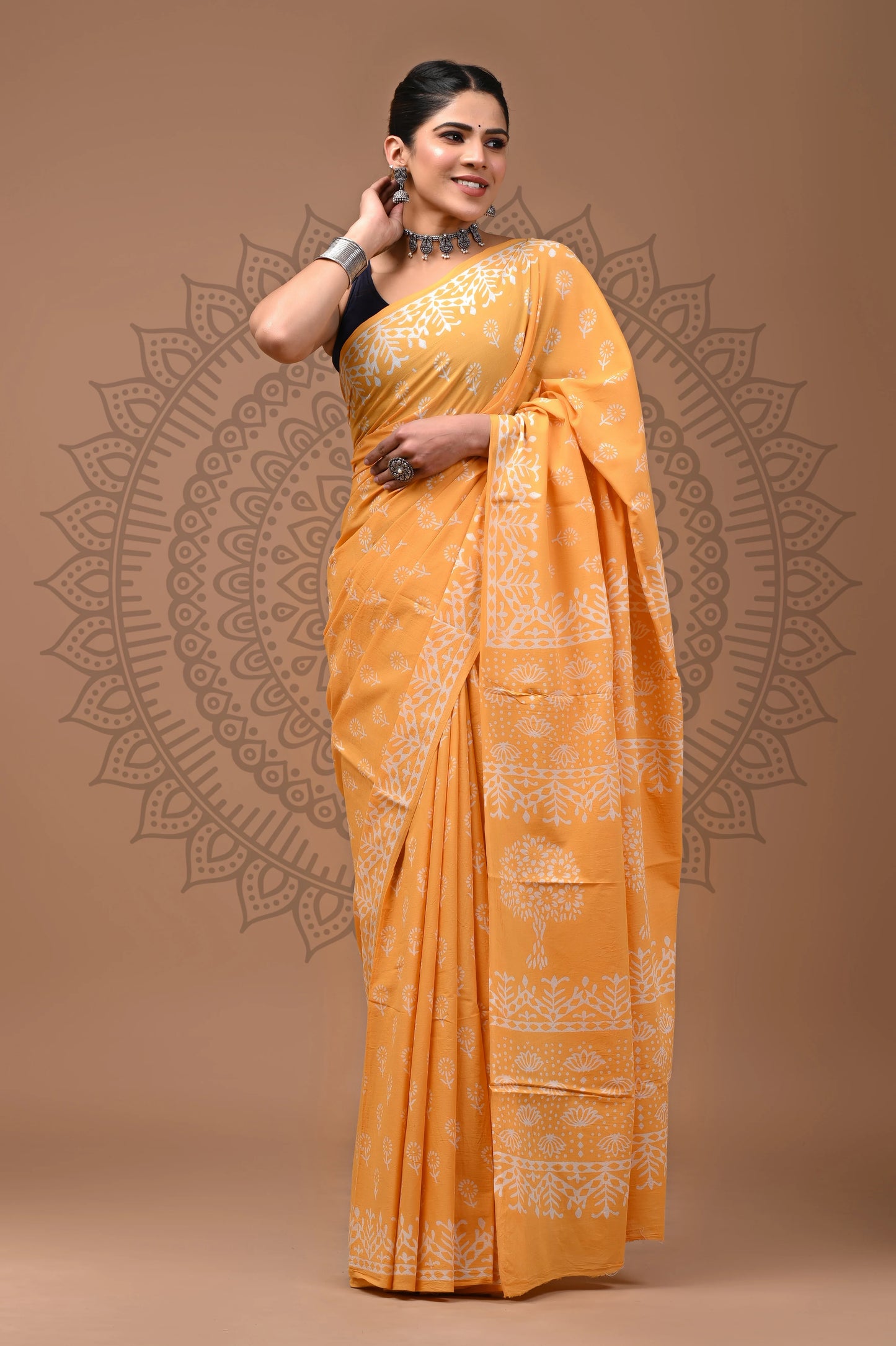 Note: These sarees are purely handmade with hand block print techniques using vegetable dye, not using any harsh chemicals or acids. Minor inconsistency in print, lightness or darkness of print in some areas are natural in hand block print. These are not defect, but adds to individuality and uniqueness to the item.