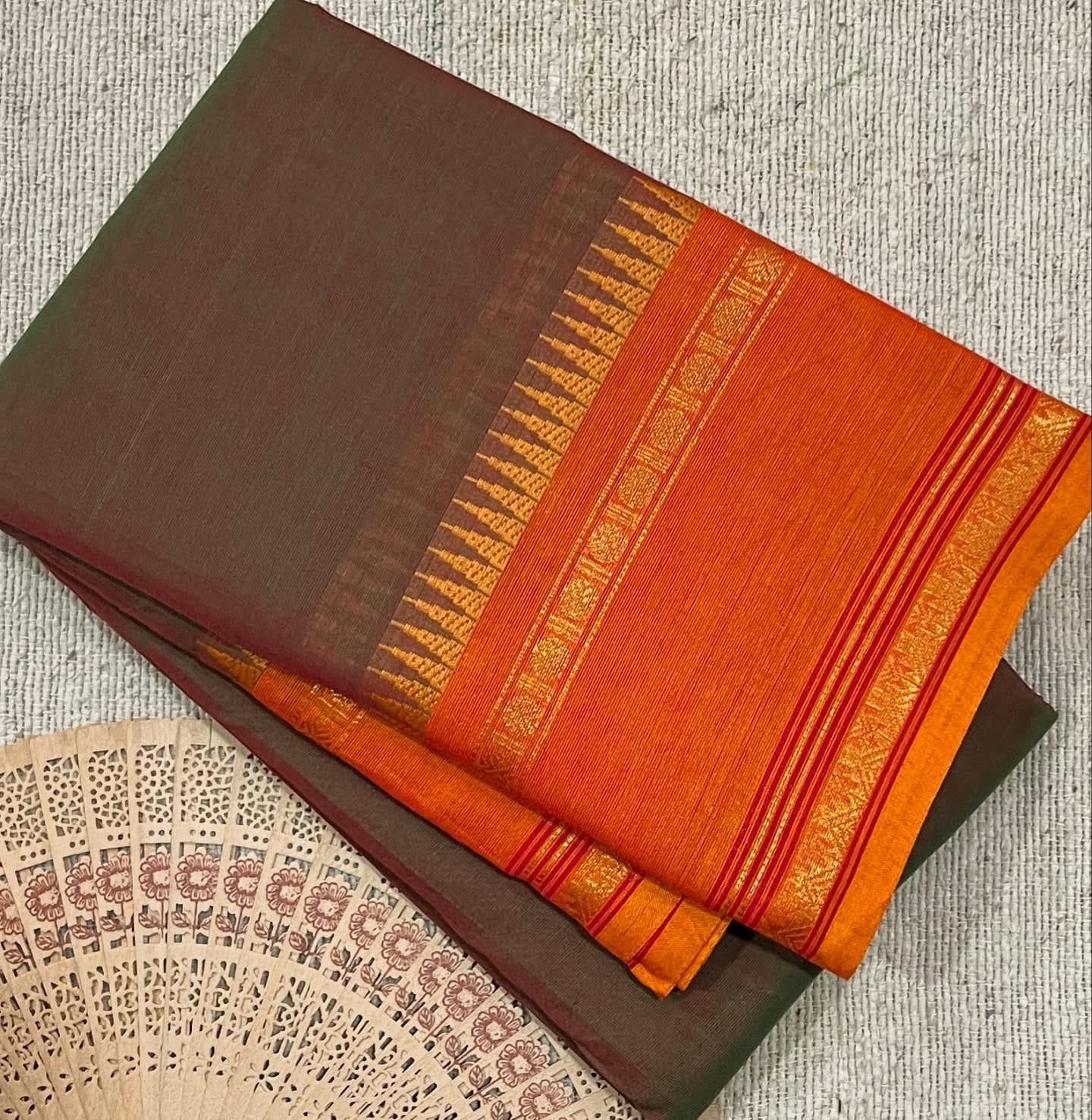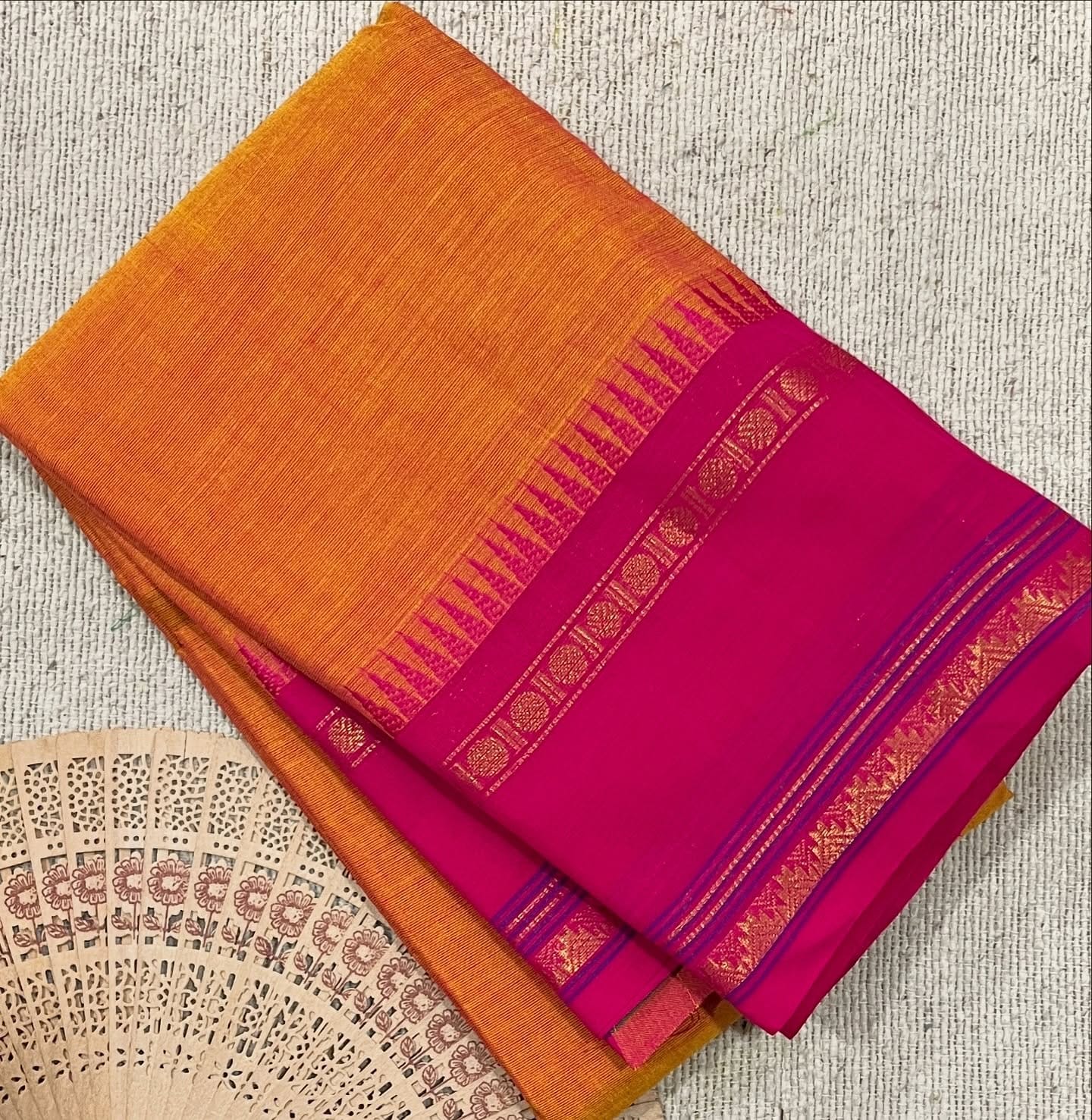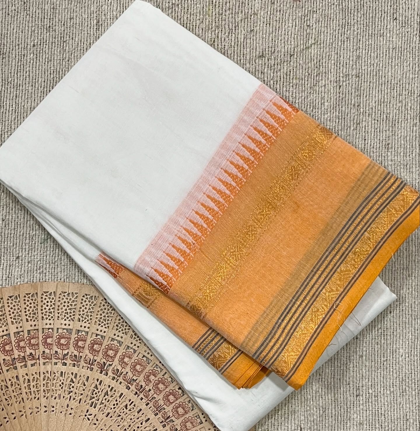 Pure cotton saree with running blouse with temple border