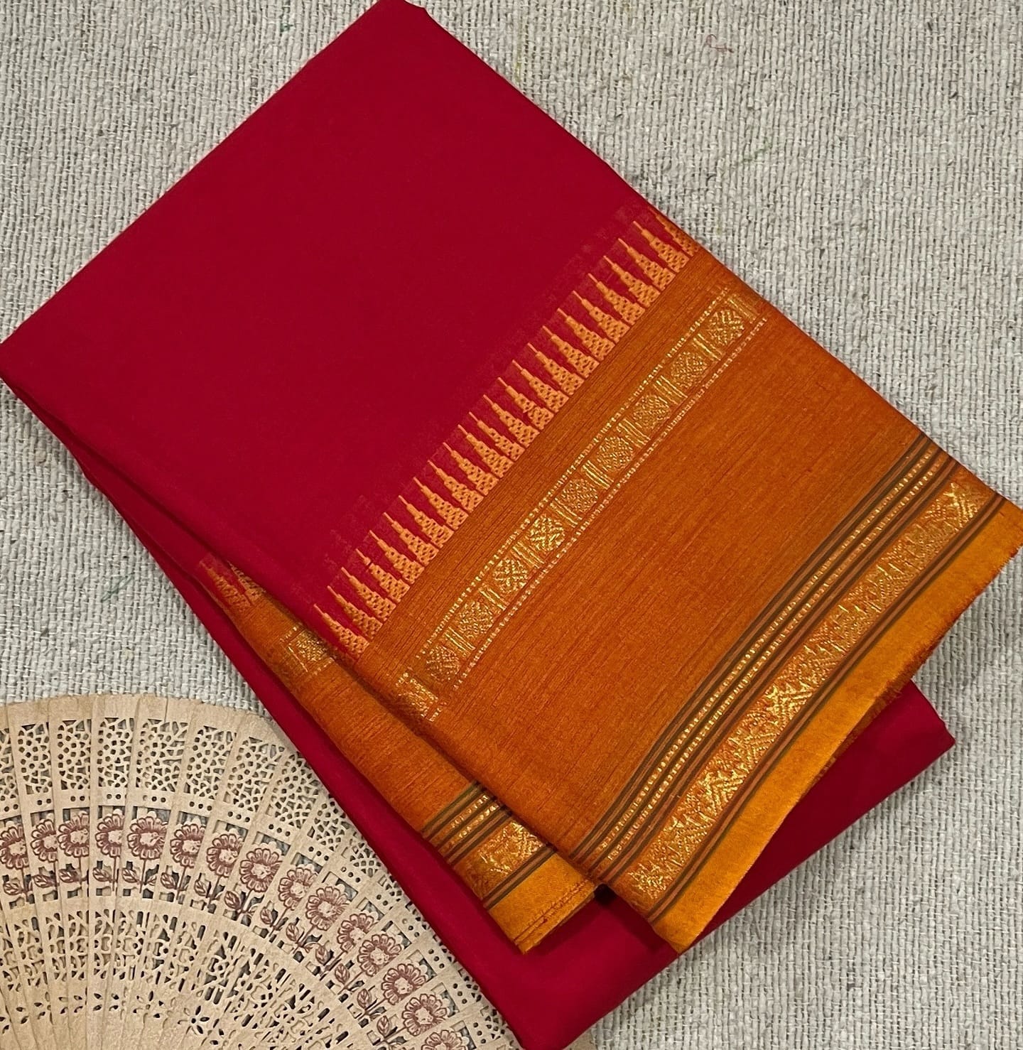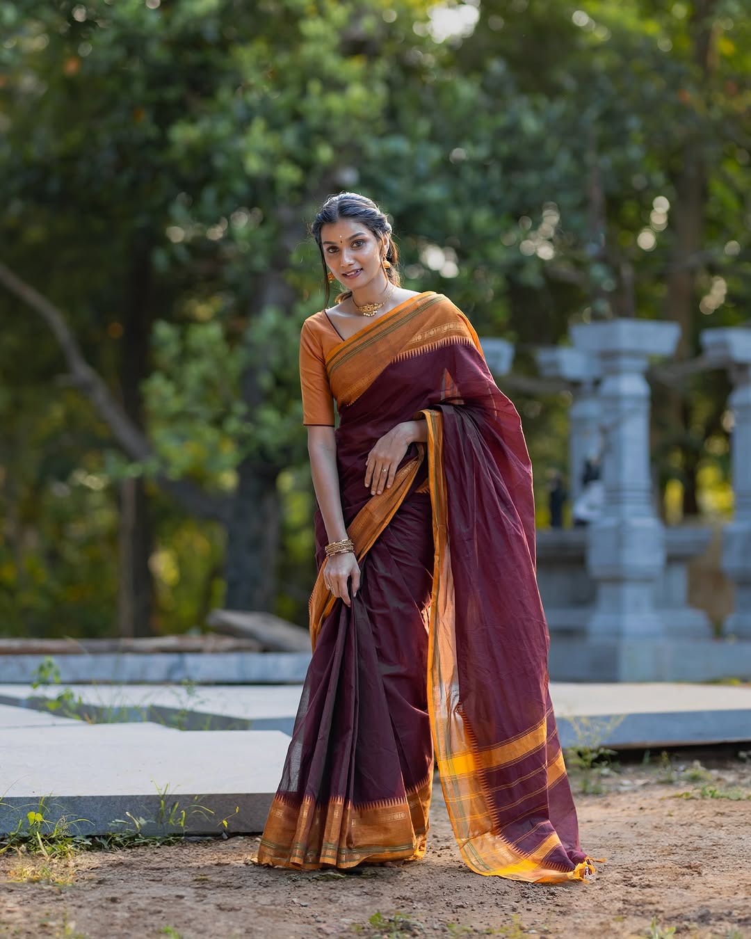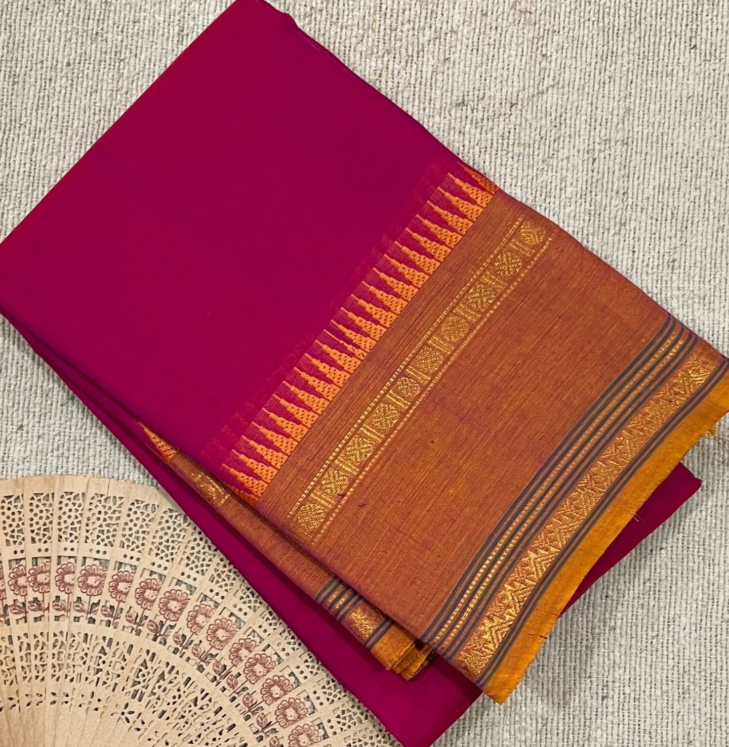 Pure cotton saree with running blouse with temple border