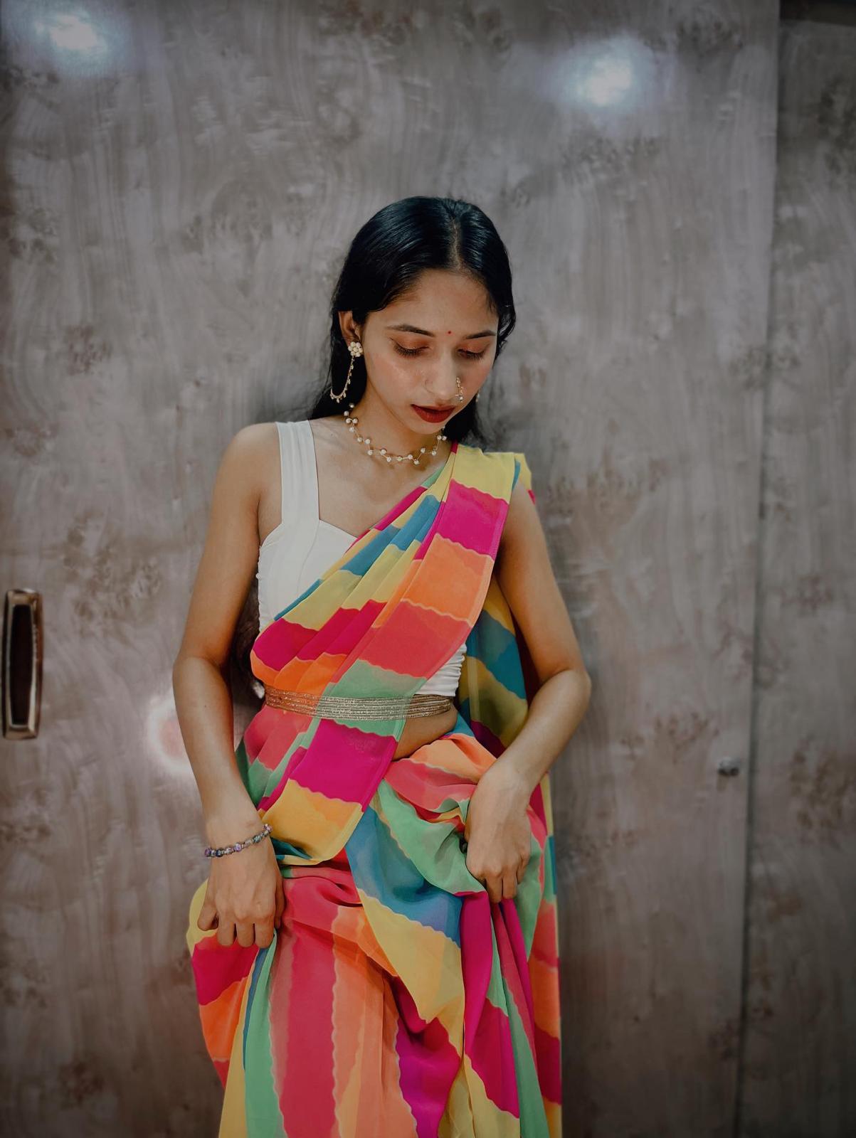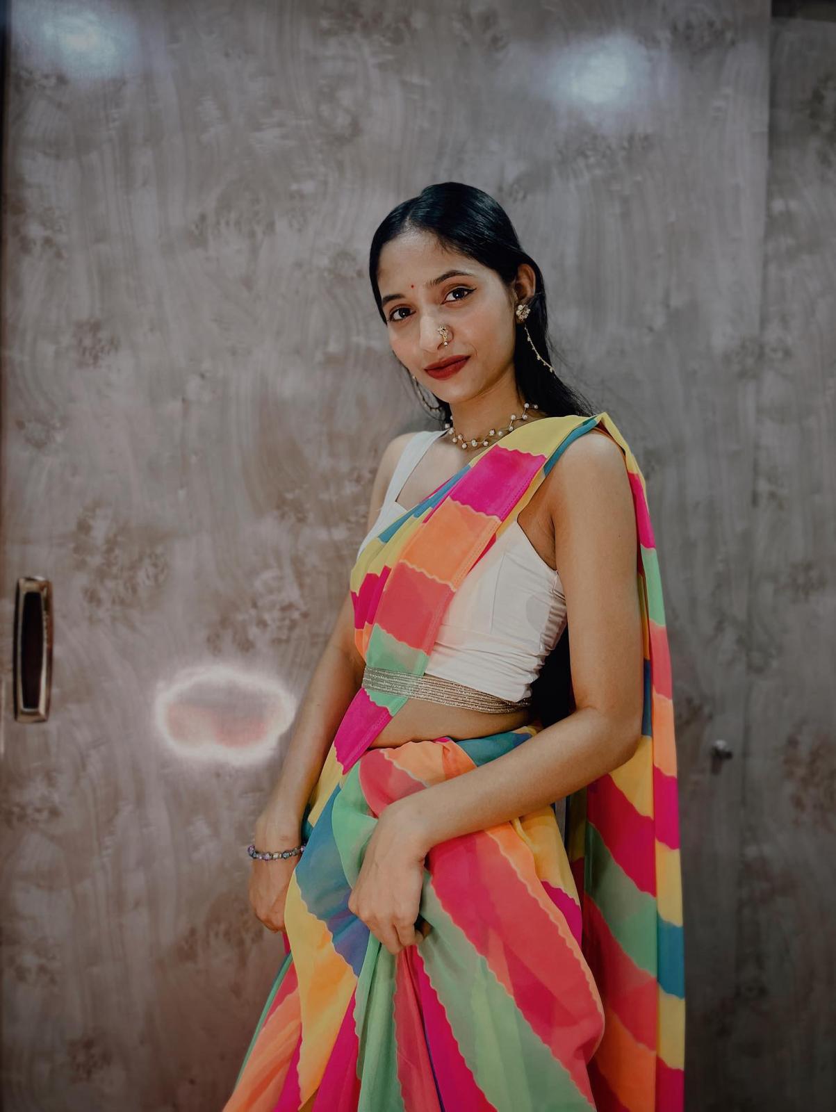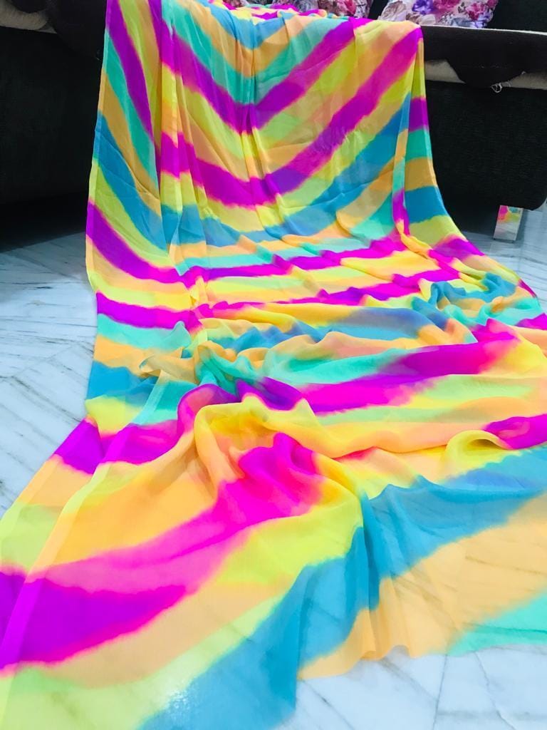 SOFT GEORGETTE FLORAL STYLE LEHERIYA PRINTED SAREE.