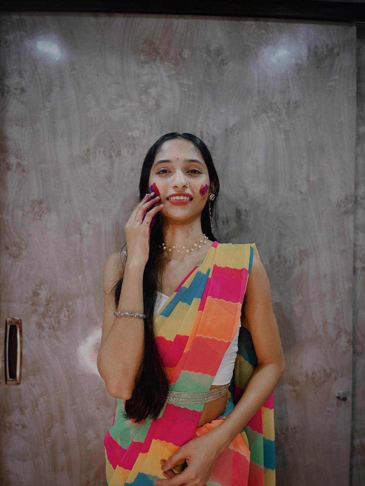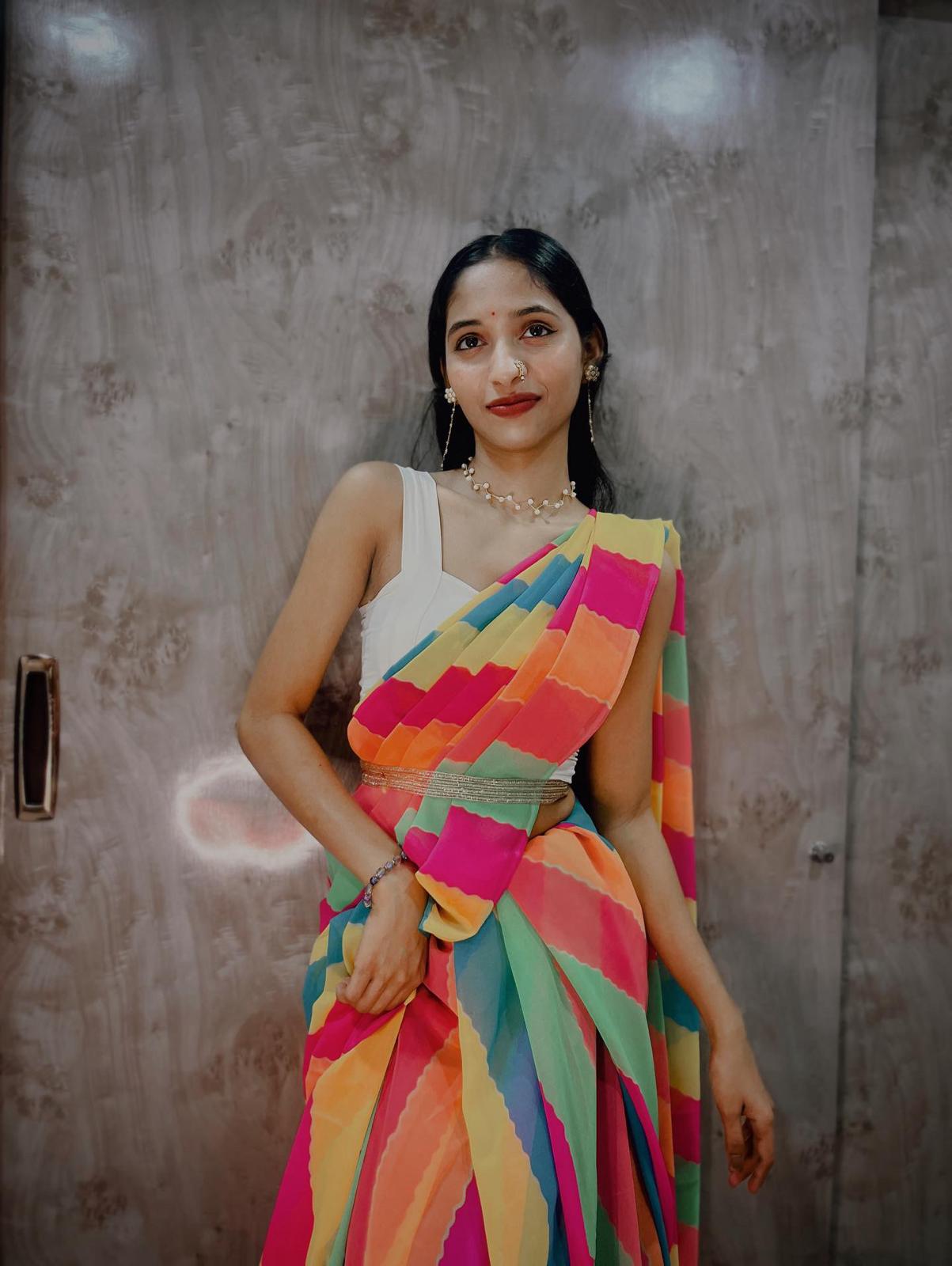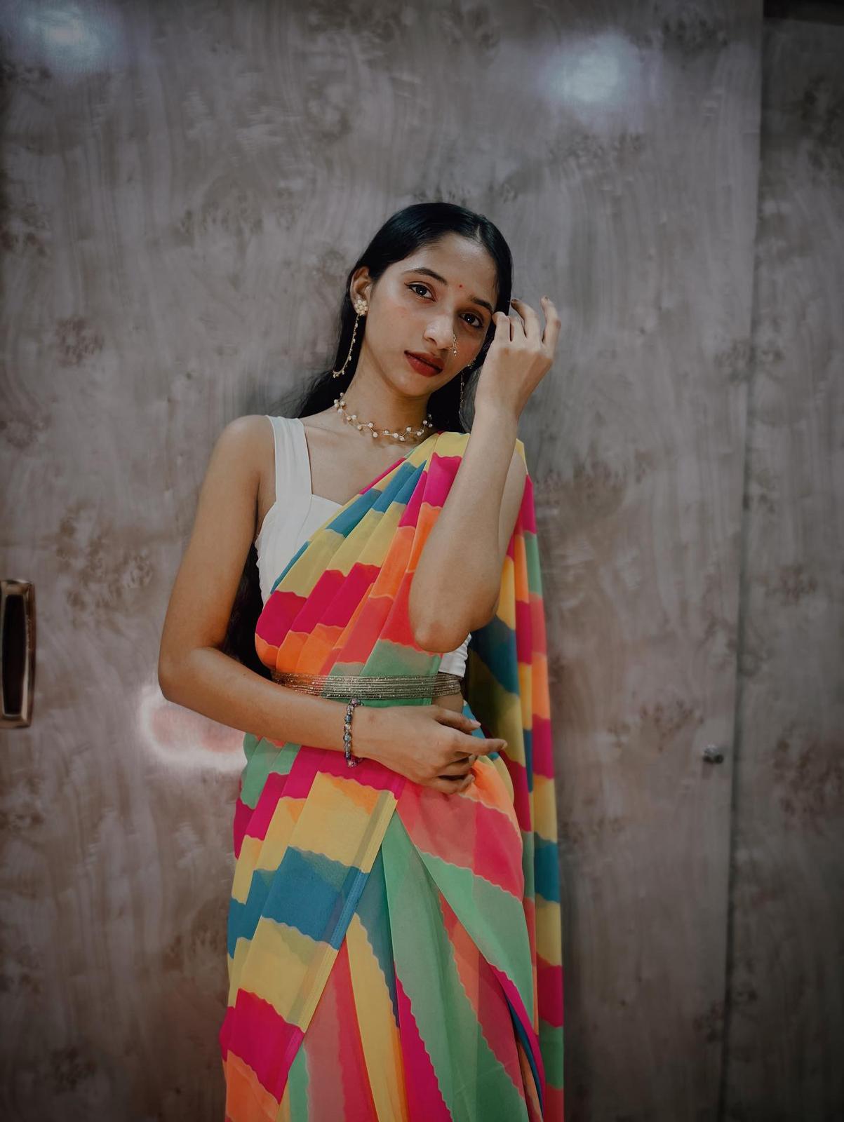 SOFT GEORGETTE FLORAL STYLE LEHERIYA PRINTED SAREE.
