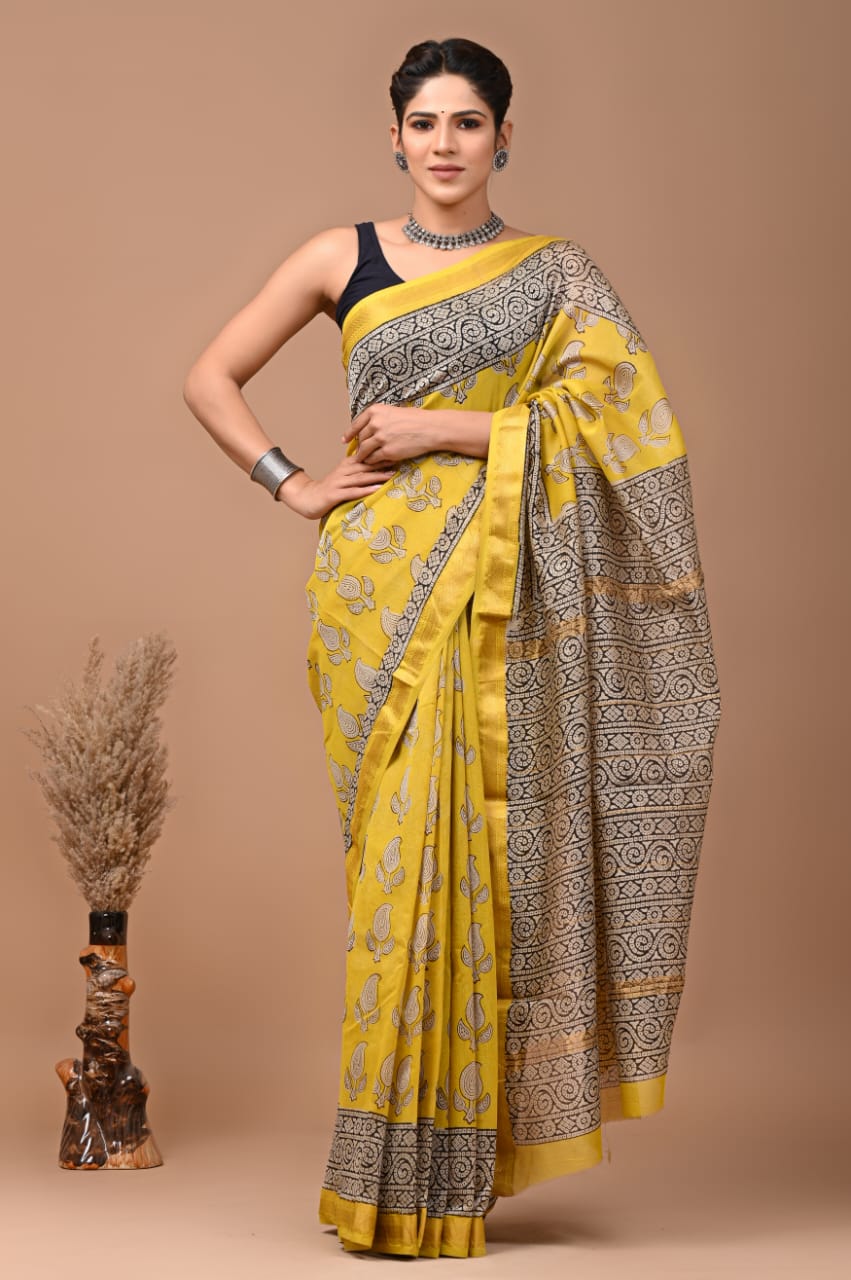 Maheshwari Hand block Silk Saree