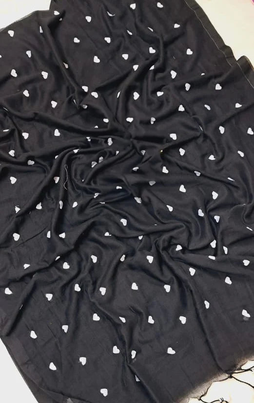 Mul cotton saree with Heart Embroidery.