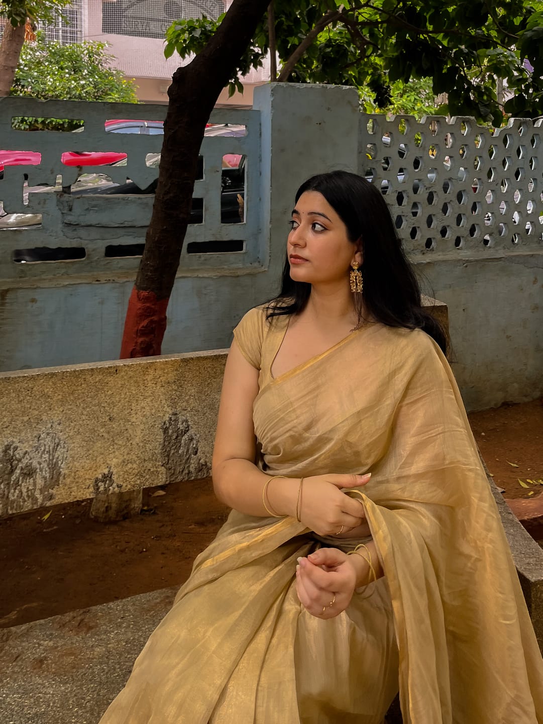 This exquisite handwoven saree is crafted using pure fabric threads and traditional handloom techniques in the villages of Maheshwar, India. this saree blends heritage craftsmanship with modern elegance, making it a must-have for your wardrobe.