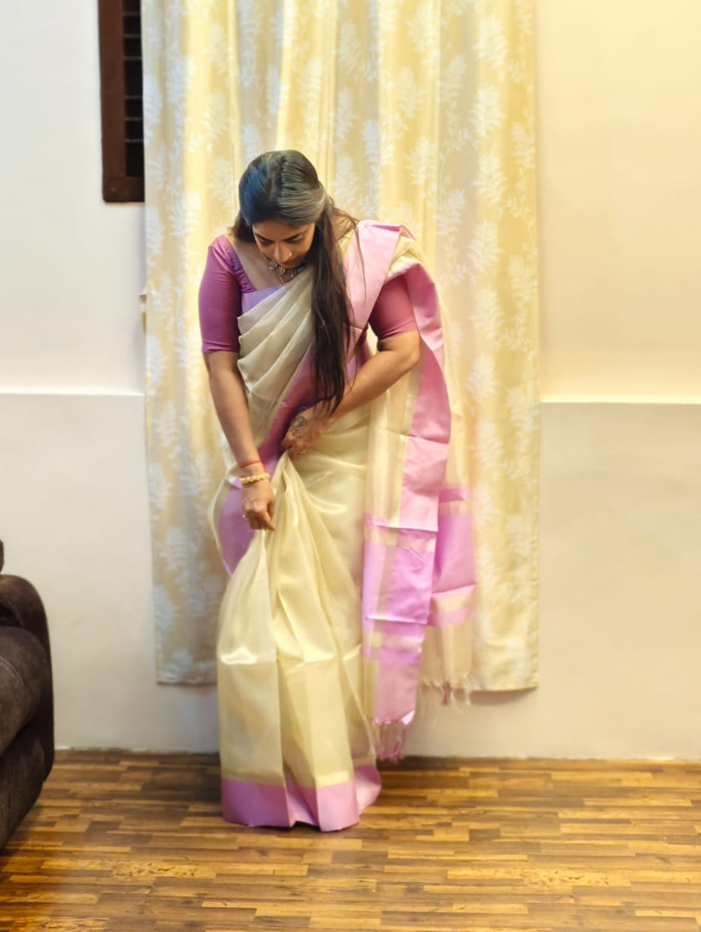 Onam Special Silver Tissue Silk Saree