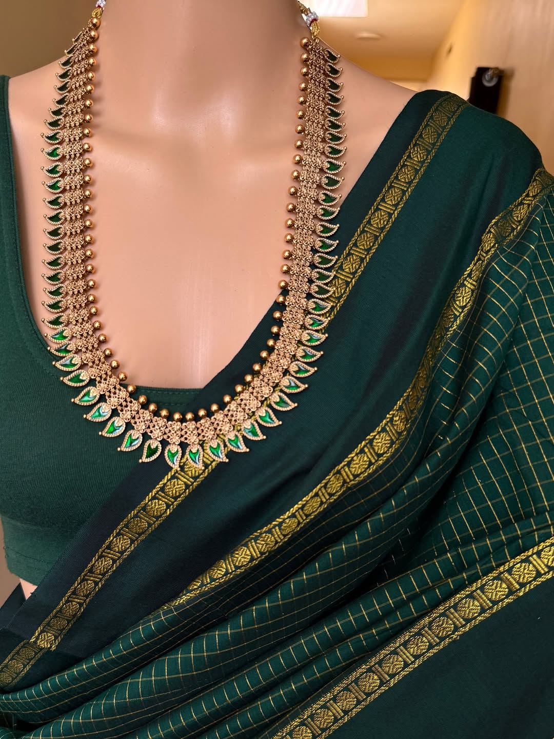 Woven with love and heritage, it features intricate gold zari work and classic rudraksham motifs, evoking a graceful vintage allure that never fades. 💛✨