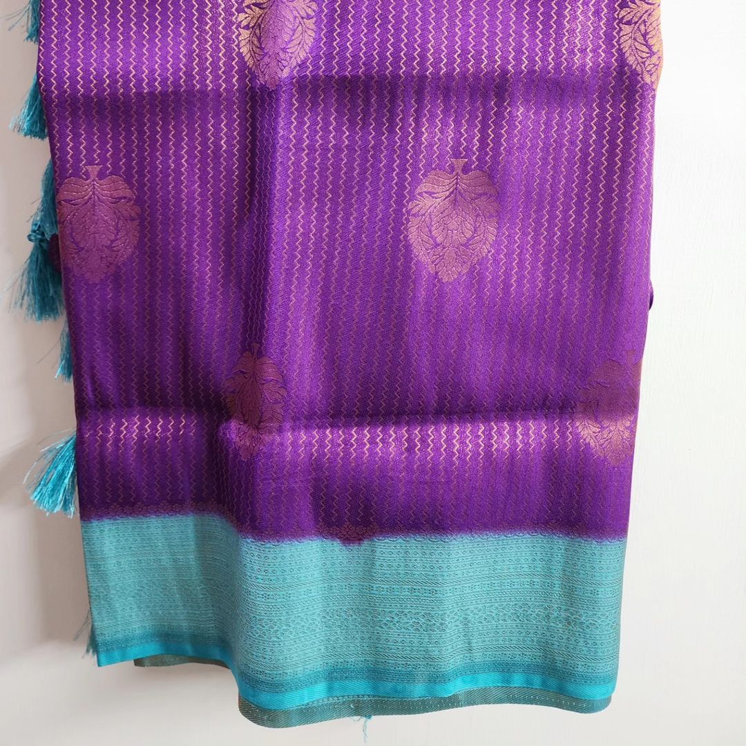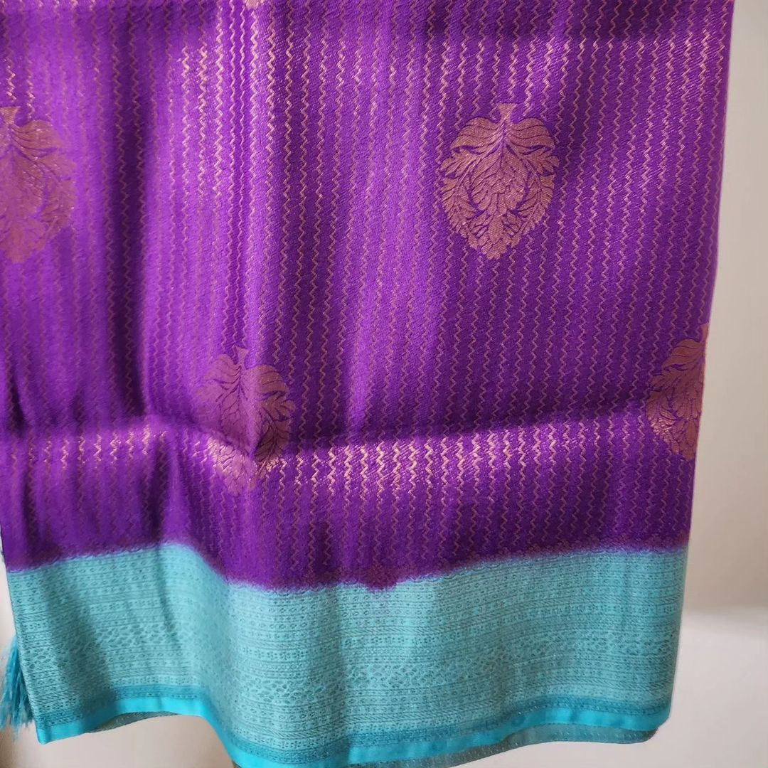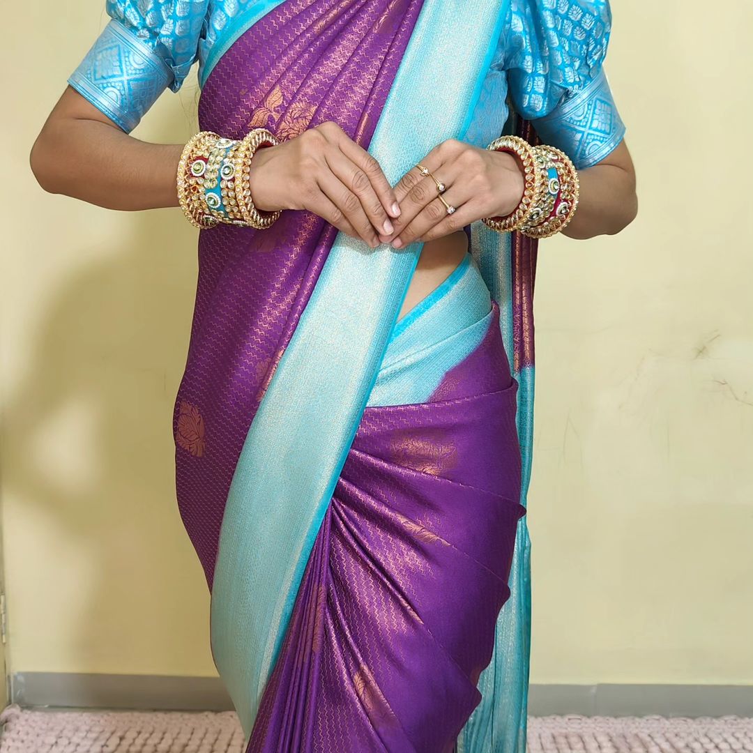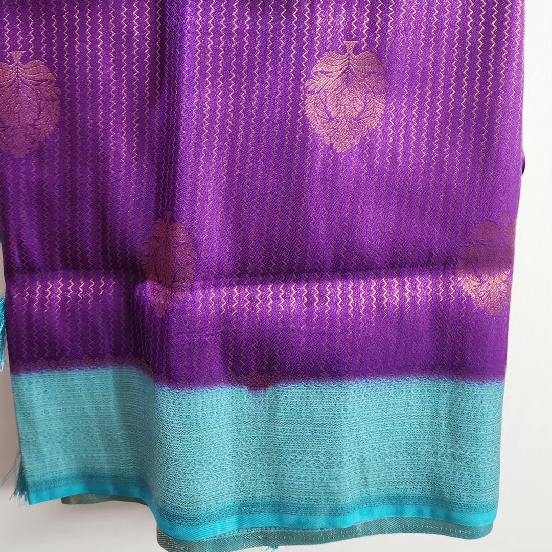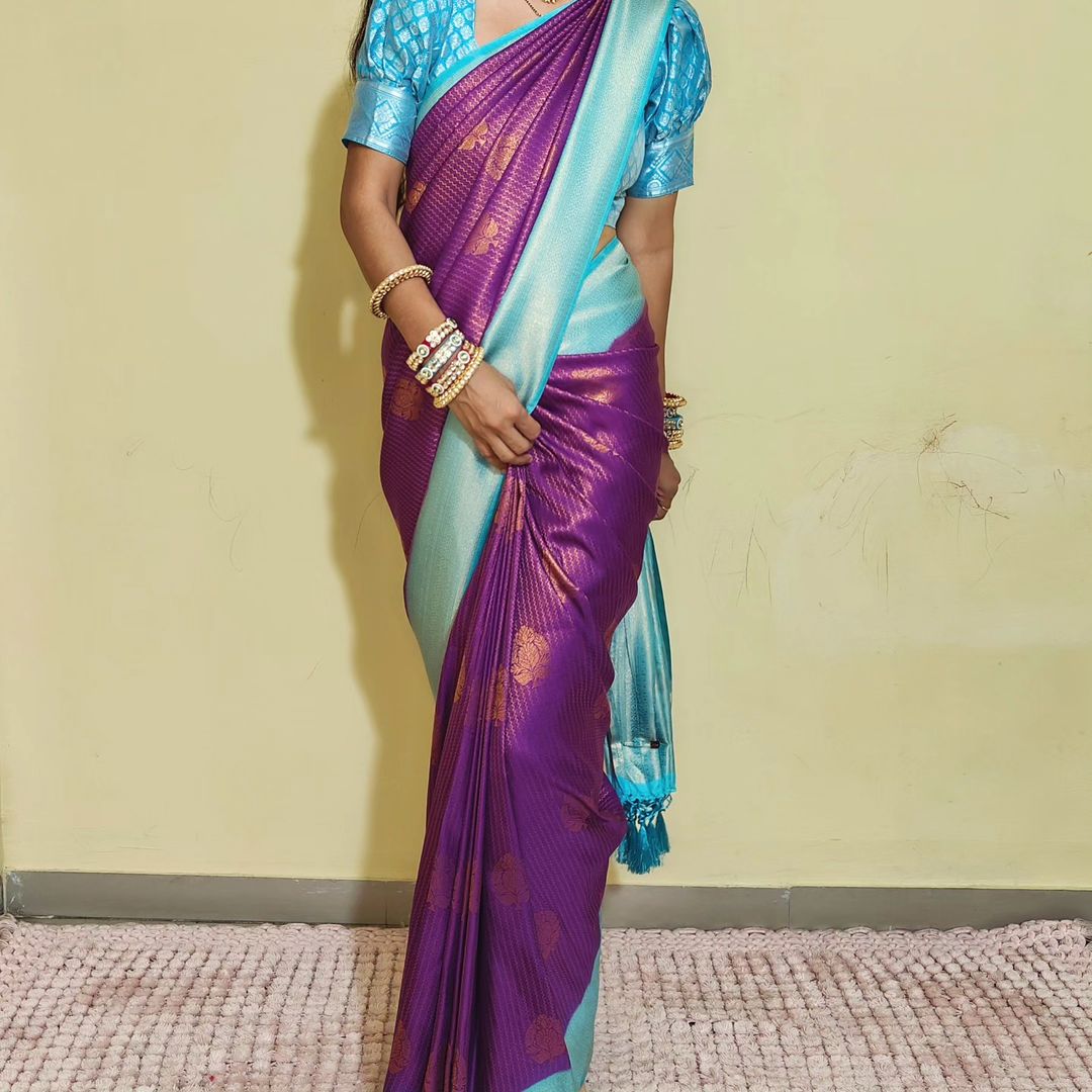 Rekha richness and pureness of Purple with Blue border soft silk saree.