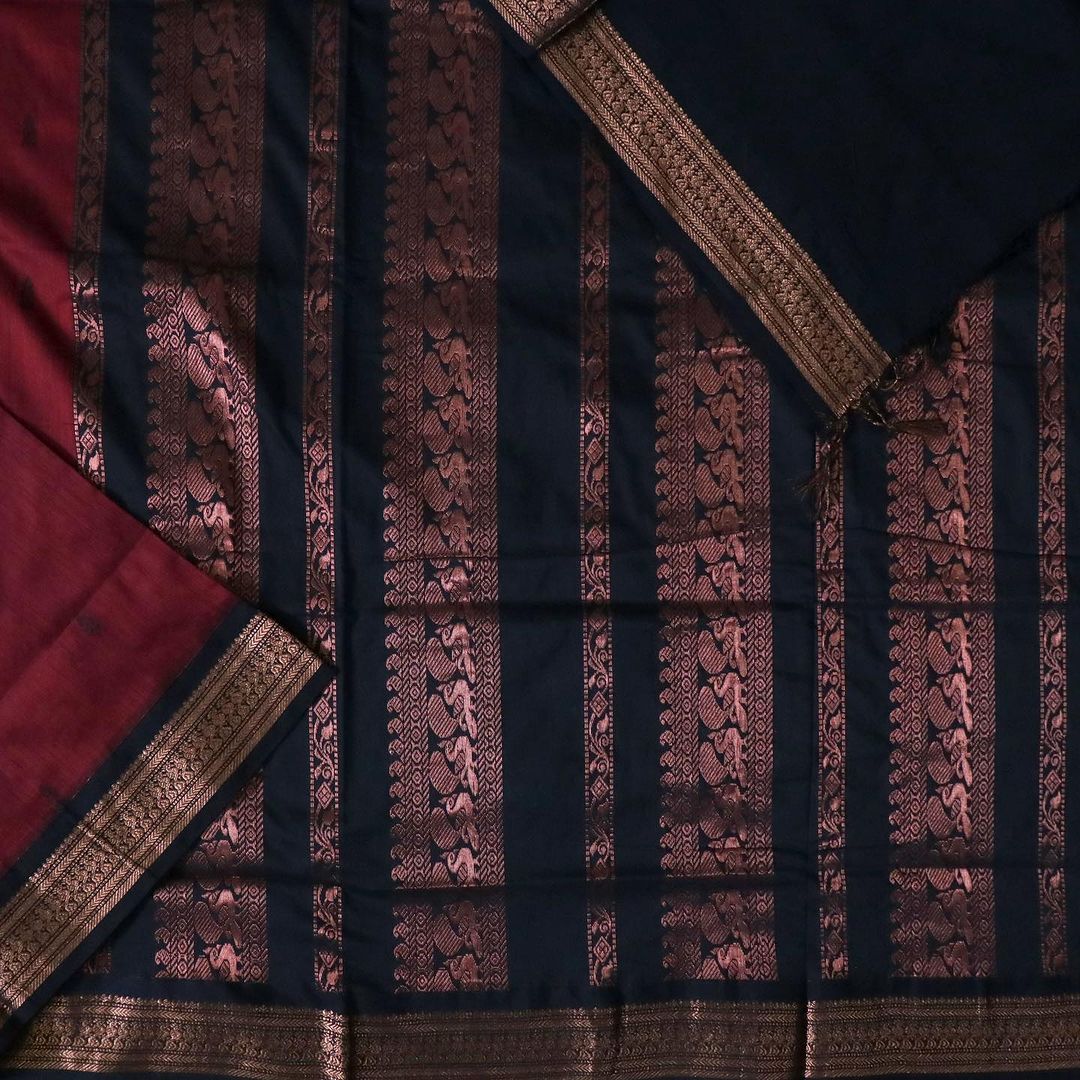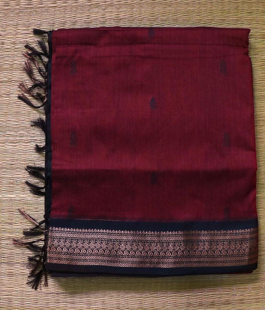 Gorgeous Madurai cotton silk saree with a copper zari border & rich traditional pallu With blouse