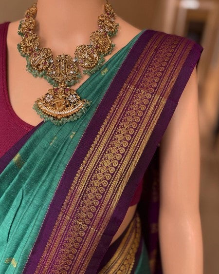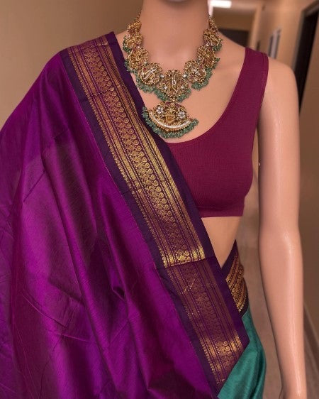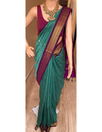 Gorgeous Madurai cotton silk saree with a copper zari border & rich traditional pallu With blouse