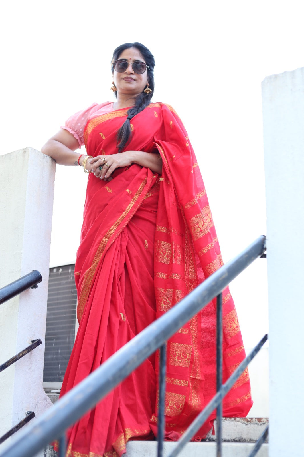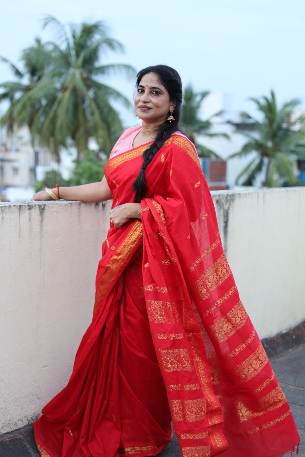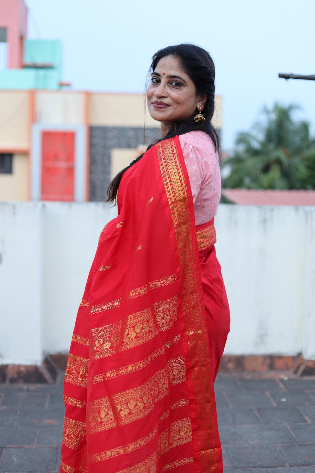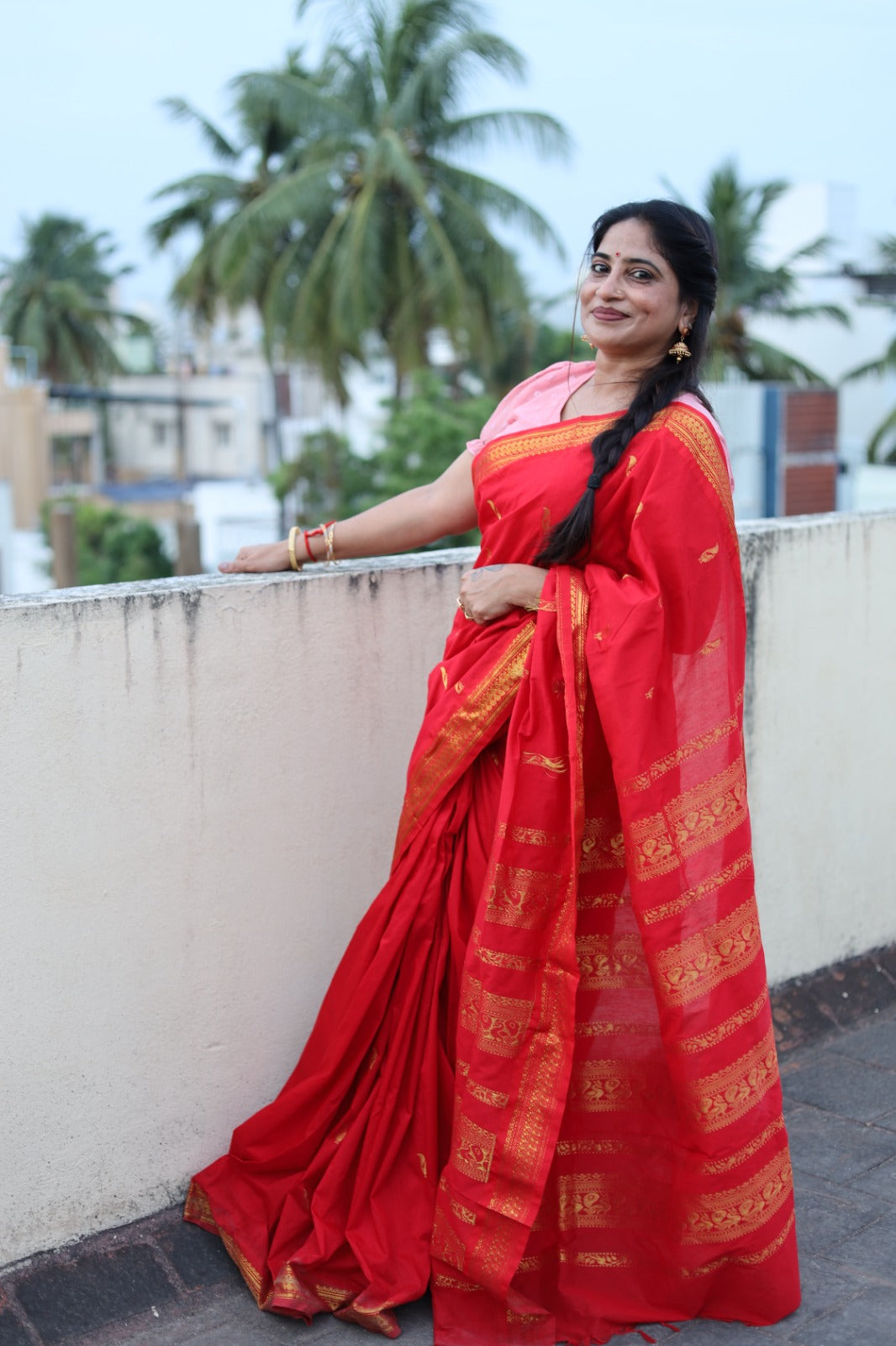 Thara Gorgeous Madurai cotton silk saree with a copper zari border & rich traditional pallu With blouse