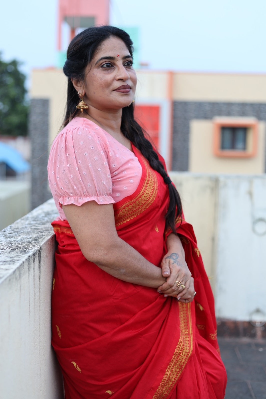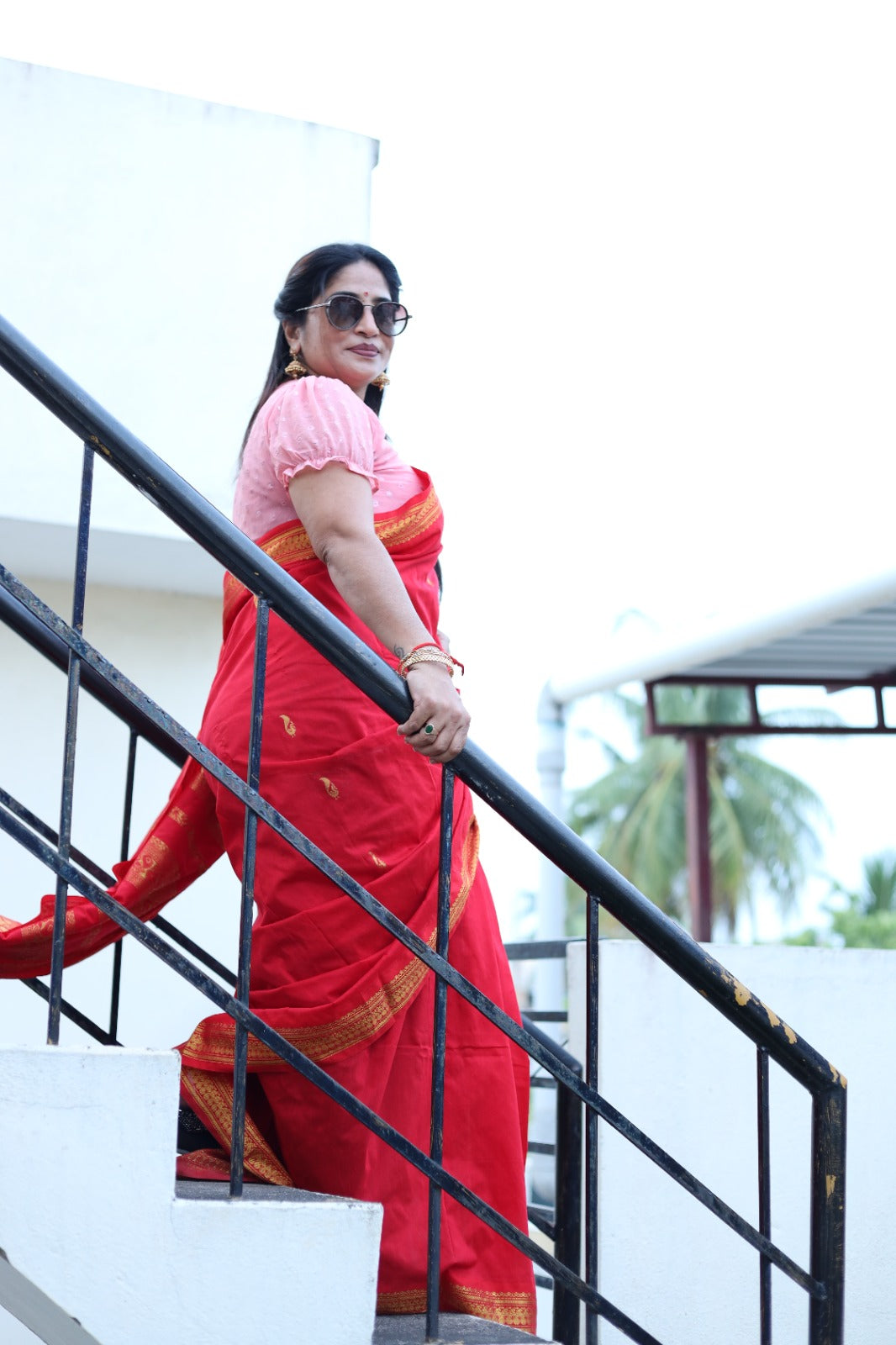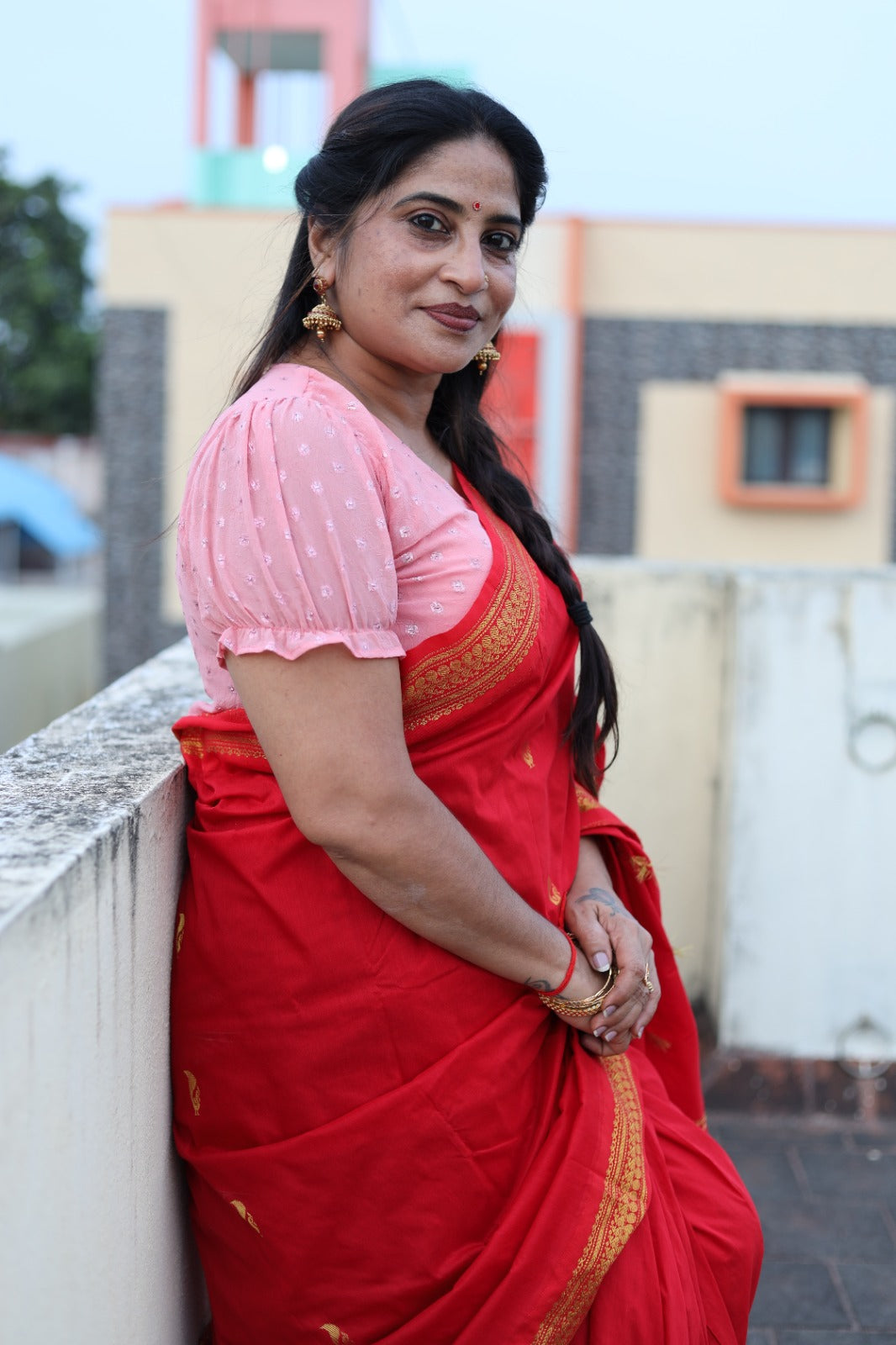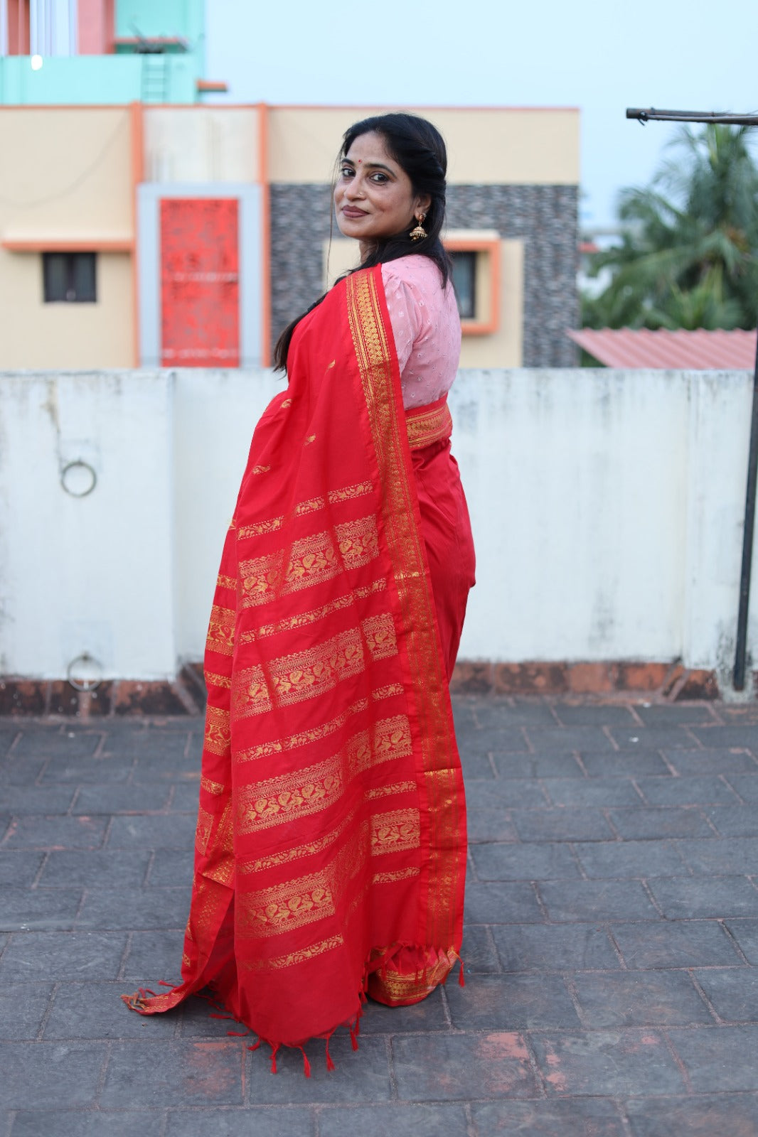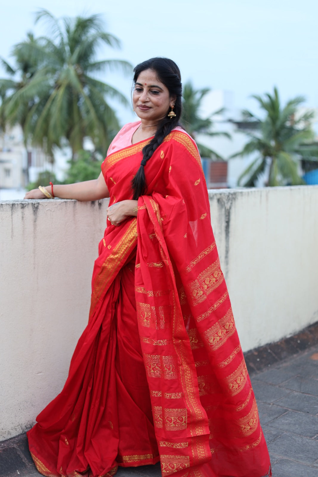 Thara Gorgeous Madurai cotton silk saree with a copper zari border & rich traditional pallu With blouse