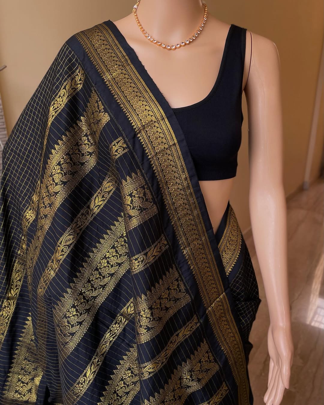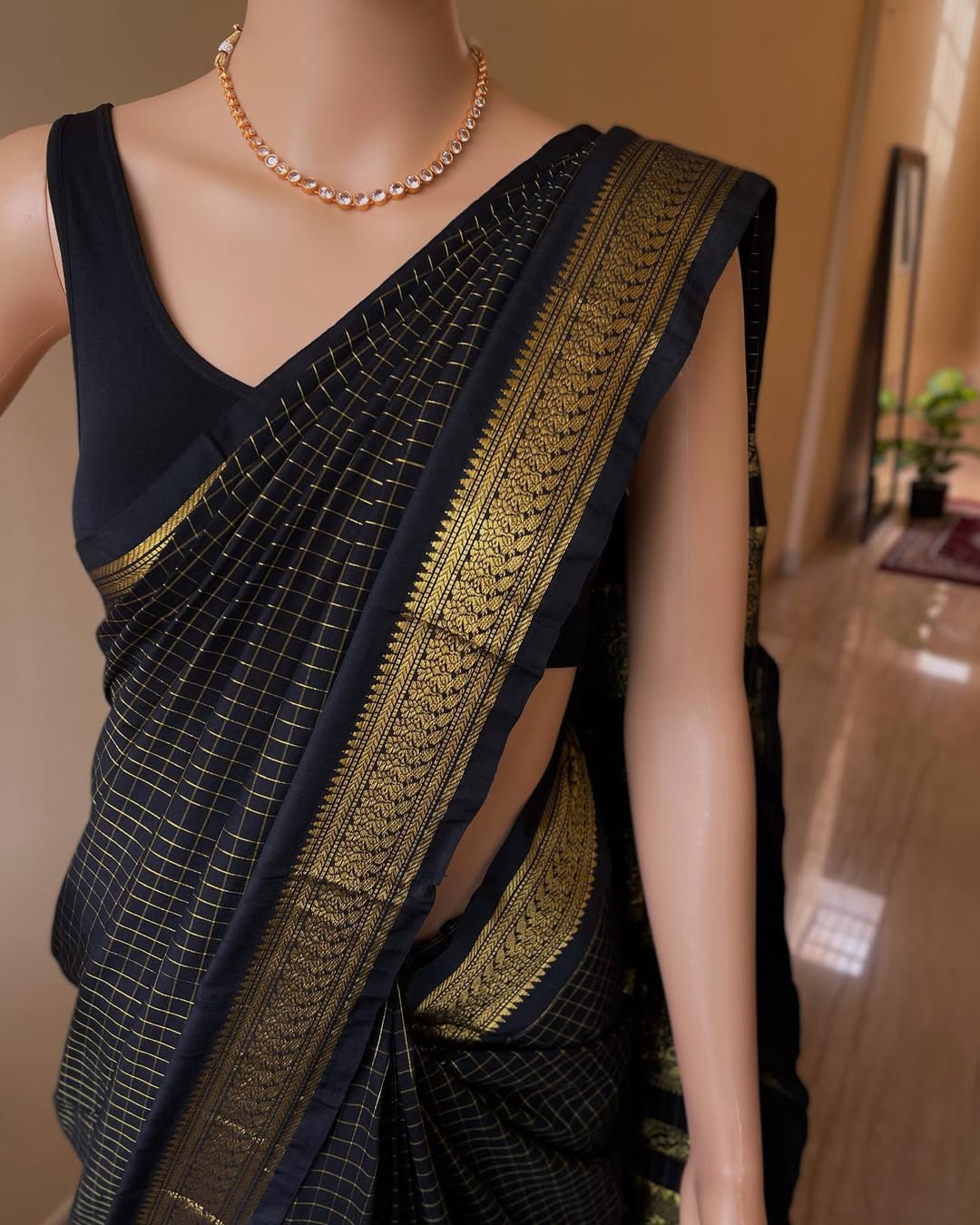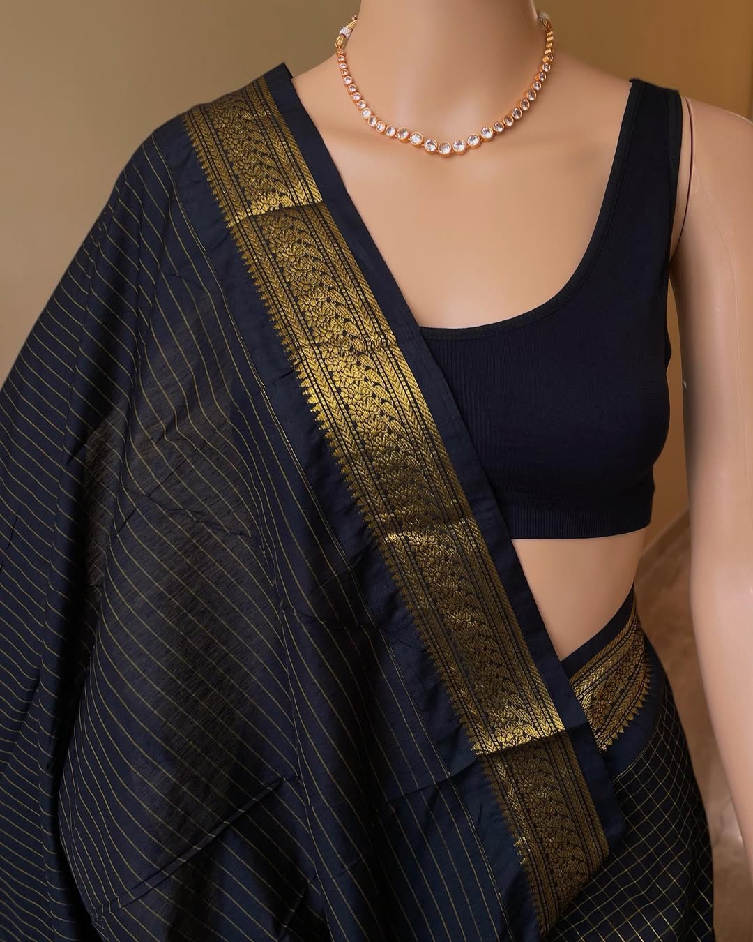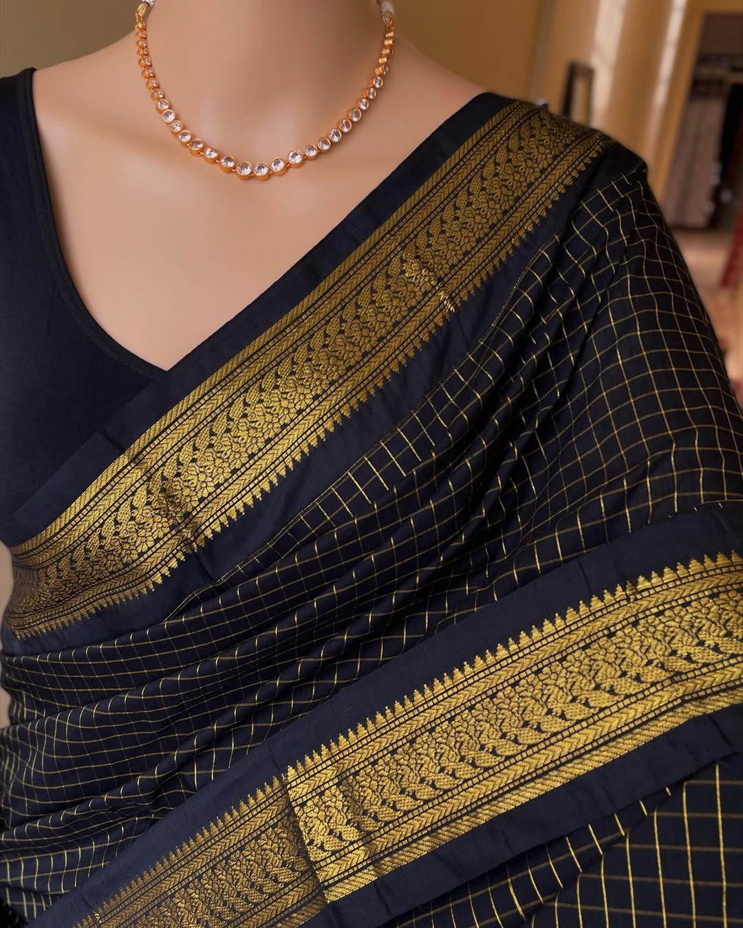 Thara Gorgeous Madurai cotton silk saree with a copper zari border & rich traditional pallu With blouse