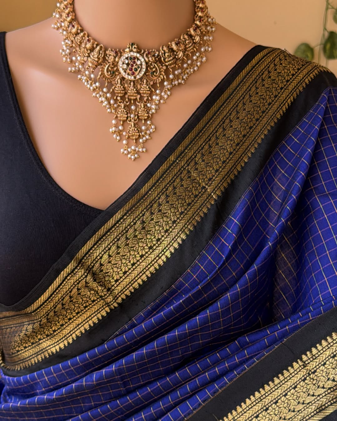 Woven with love and heritage, it features intricate gold zari work and classic rudraksham motifs, evoking a graceful vintage allure that never fades. 💛✨