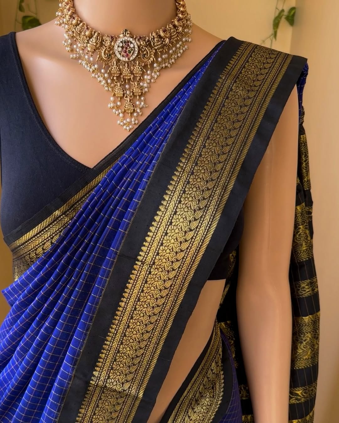A beautiful blend of nostalgia and elegance, this saree isn’t just a garment—it’s a legacy of artistry, whispering stories of generations past with every fold.